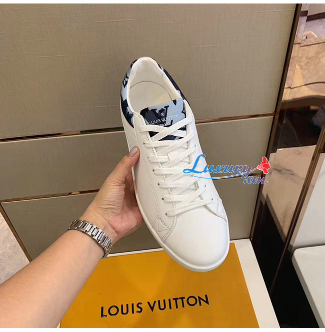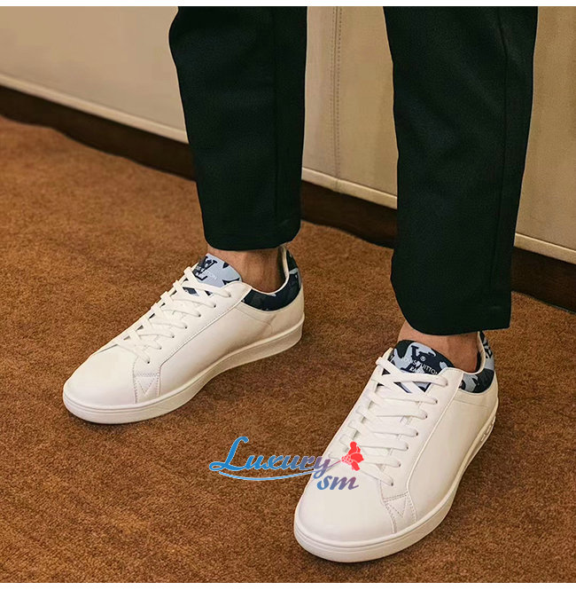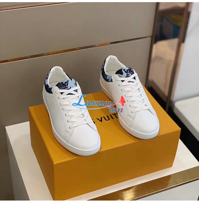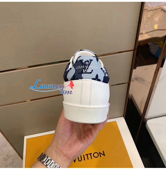 LOUIS VUITTON-1A80SO 루이비통 화이트 송아지 가죽 모노그램 카모플라쥬 디테일 룩셈부르크 스니커즈