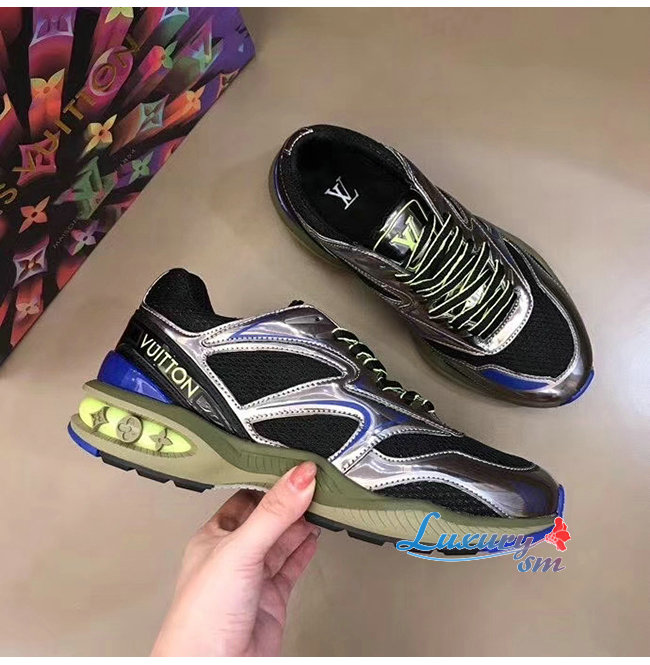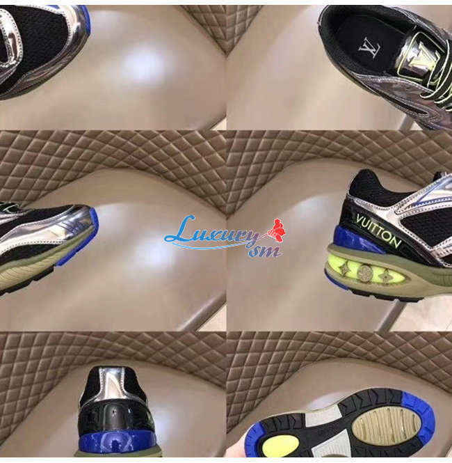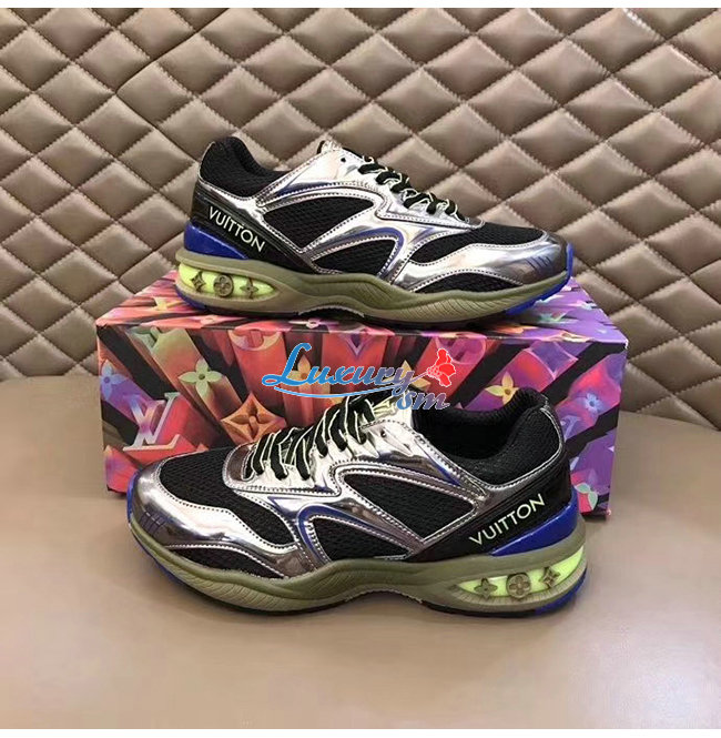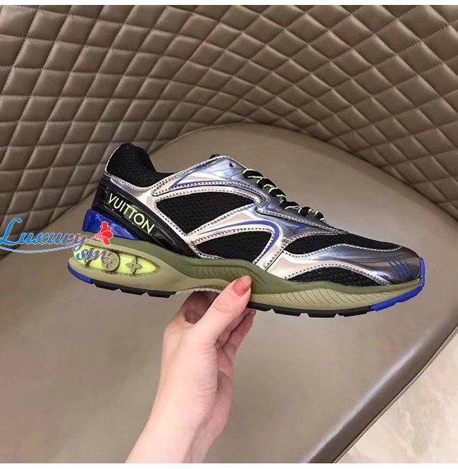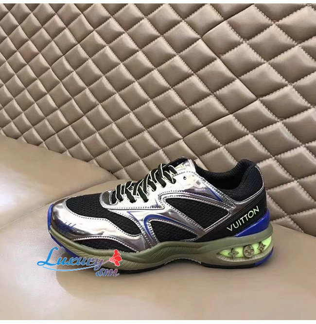 LOUIS VUITTON-1A7WK3 루이비통 실버 메탈릭 가죽 메쉬 LV 트레일 스니커즈
