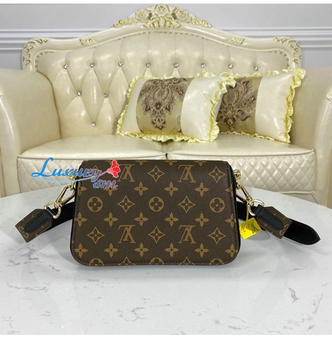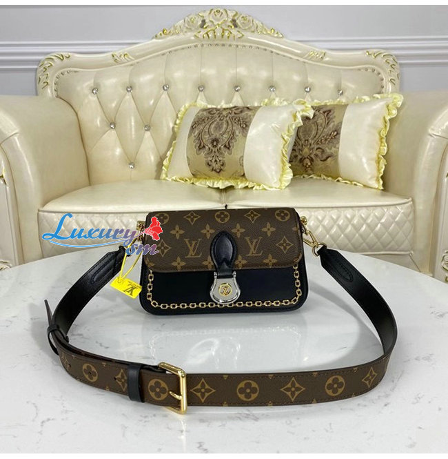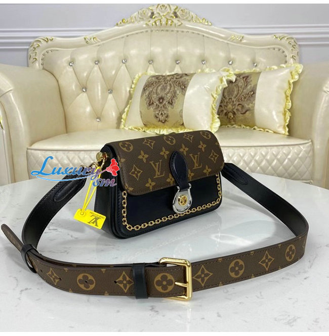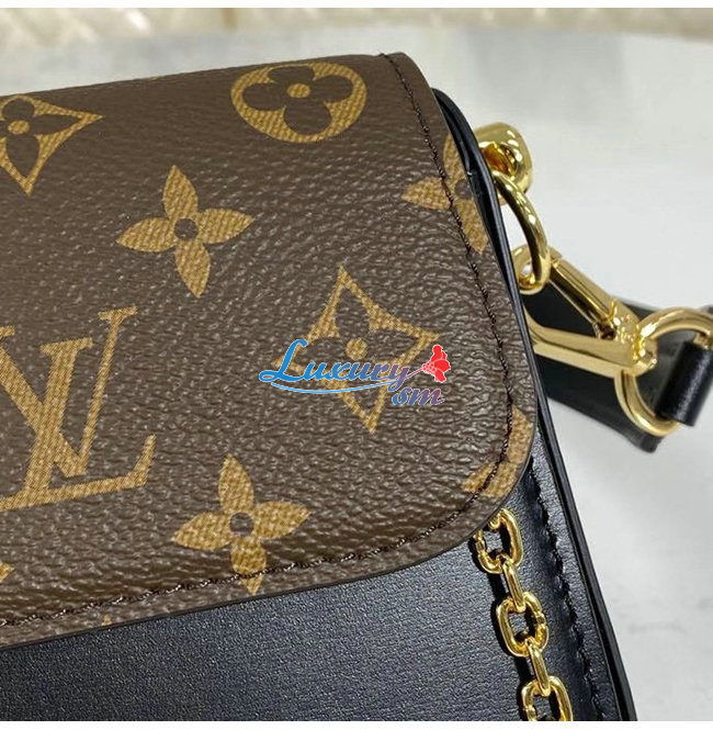 모노그램 캔버스와 매끄러운 블랙색상의 가죽소재