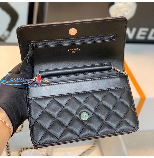[스페셜오더]CHANEL-AP1794 샤넬 블랙 램스킨 골드메탈 체인 지갑