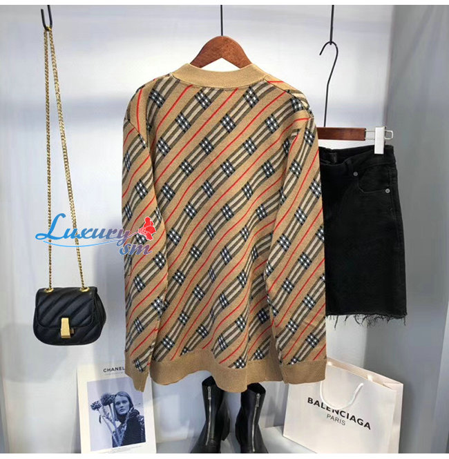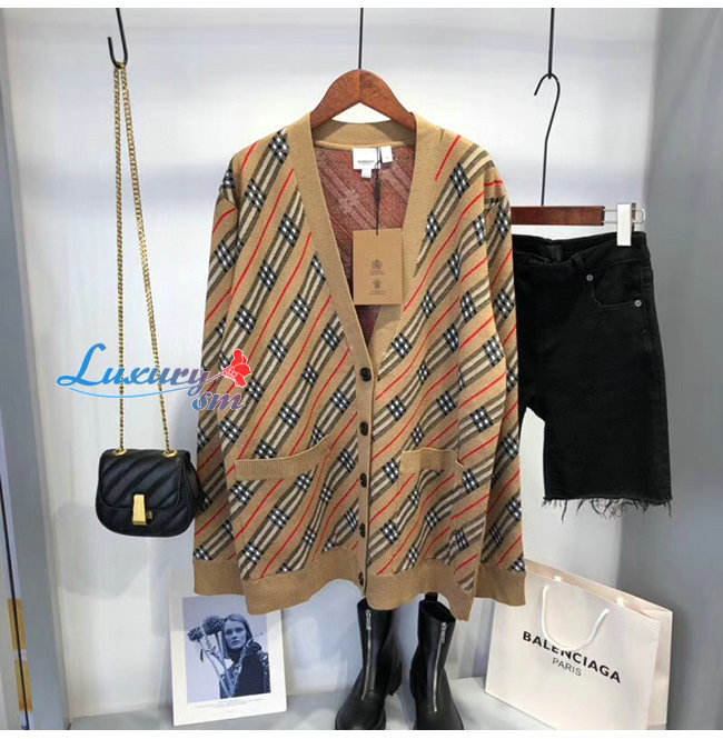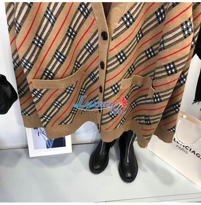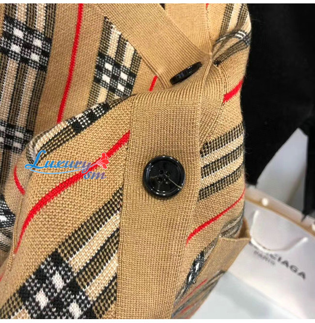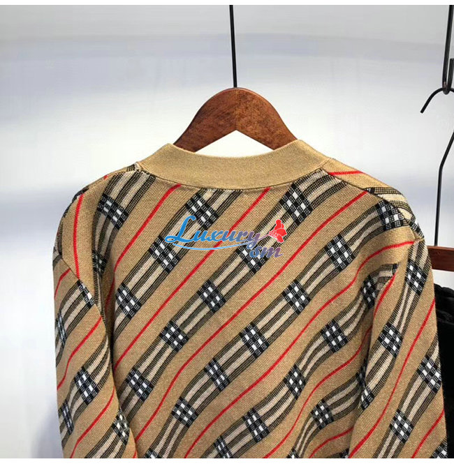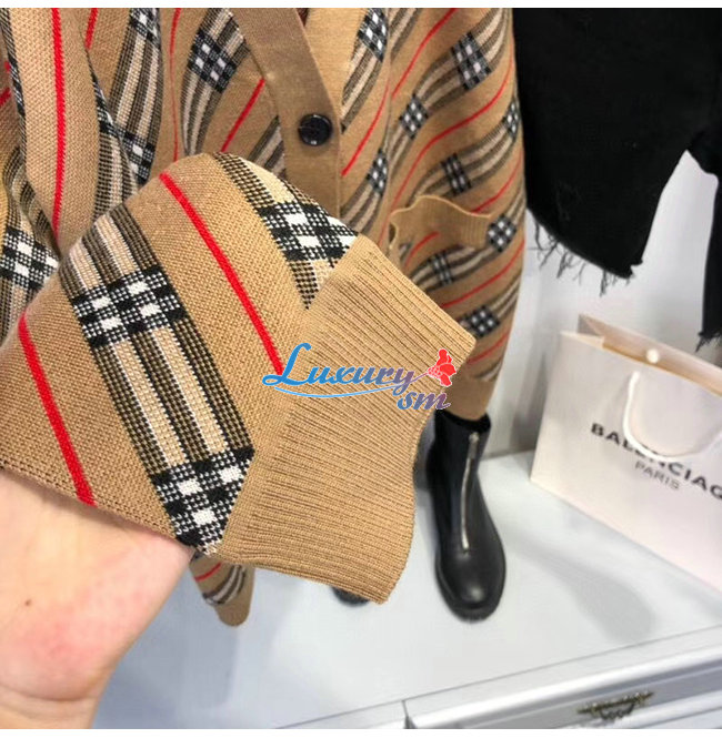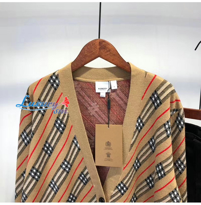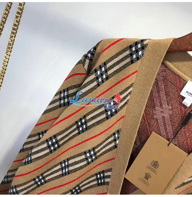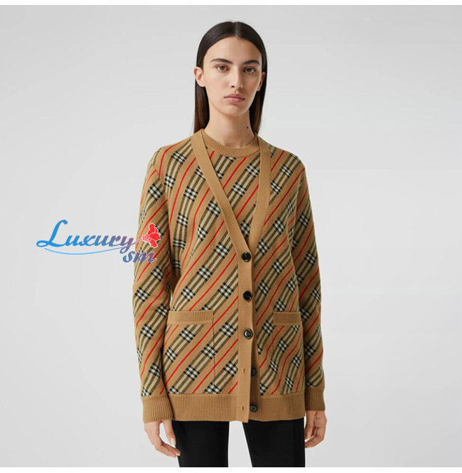 BURBERRY-80332361 버버리 카멜 스트라이프 메리노 울 블렌드 카디건
