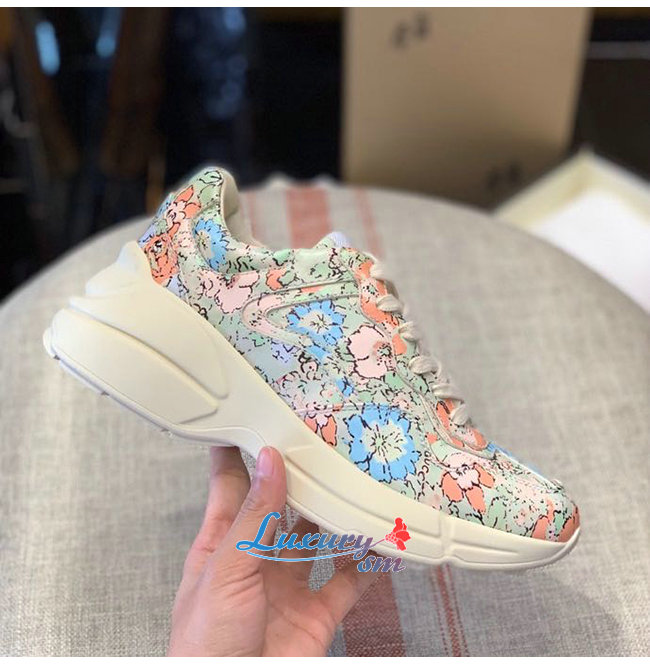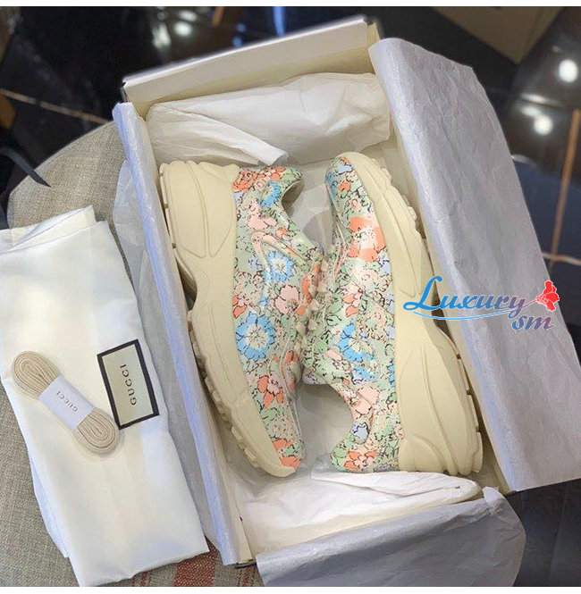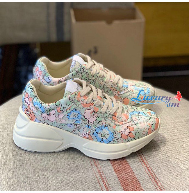 GUCCI-631708 9522 구찌 롸이톤 아이보리 가죽 Gucci Hawaii 프린트 스니커즈 남여공용