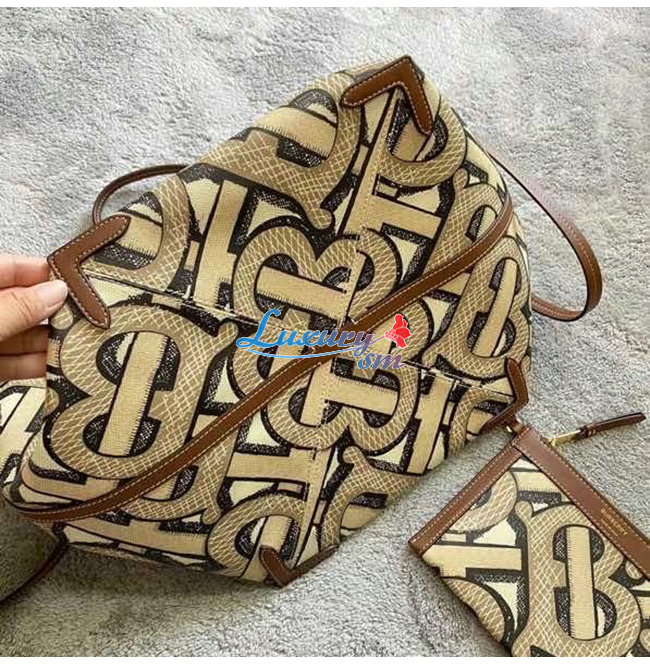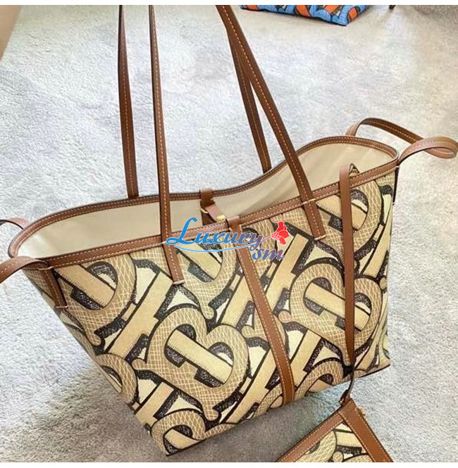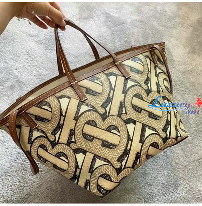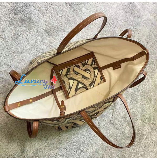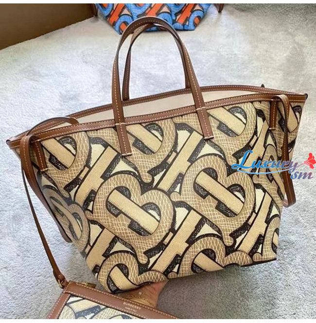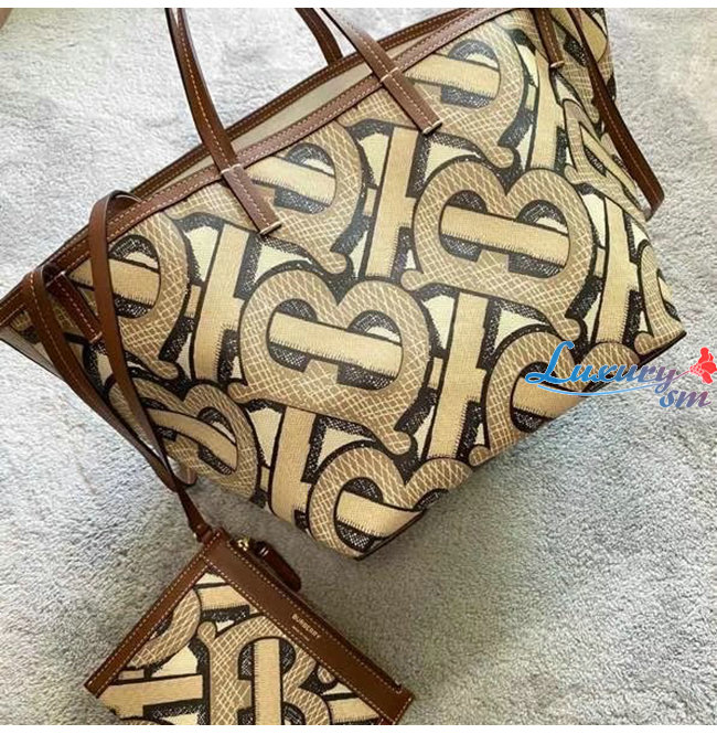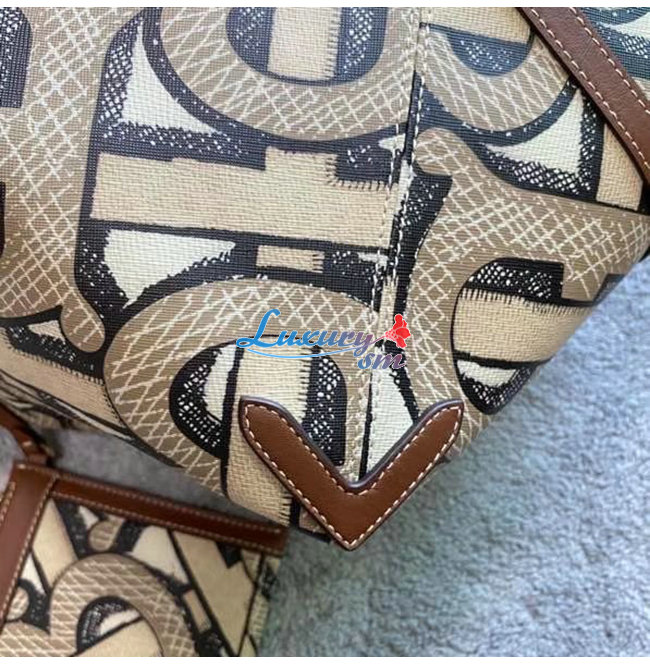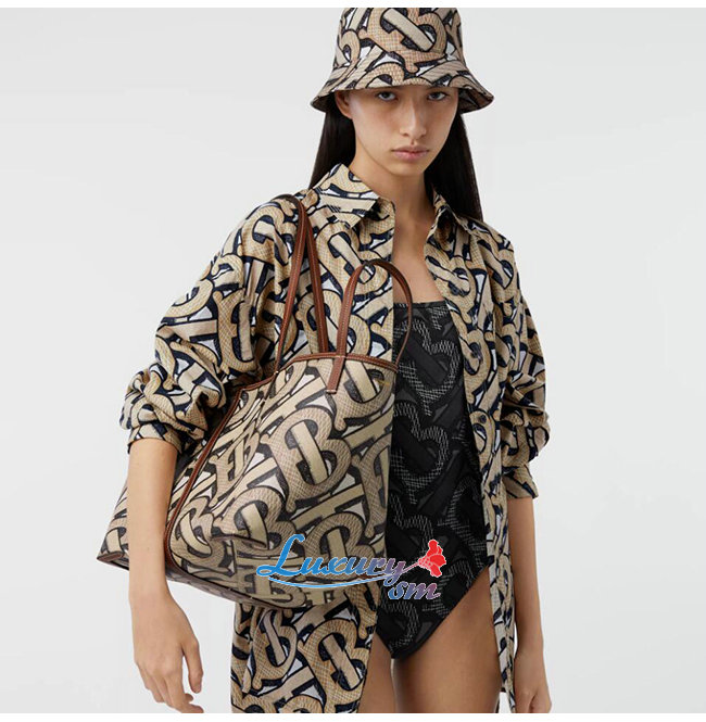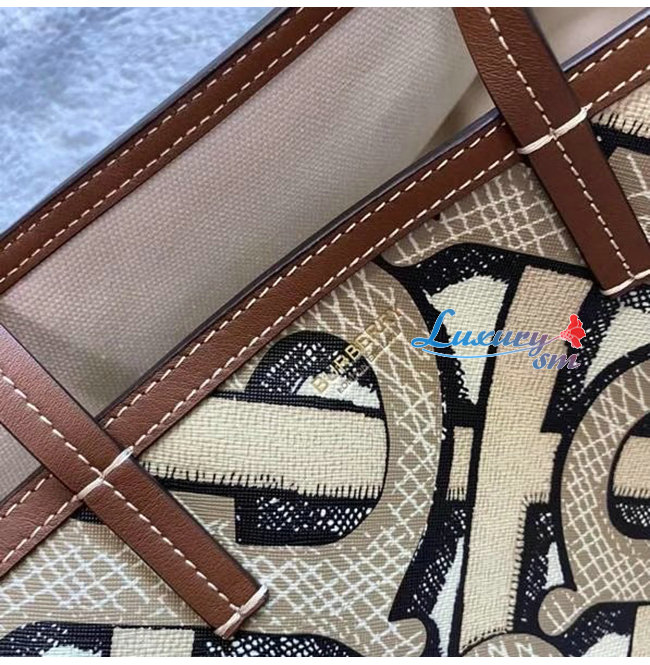 [스페셜오더]BURBERRY-80326631 버버리 다크 베이지 미니 모노그램 프린트 E-캔버스 비치 토트