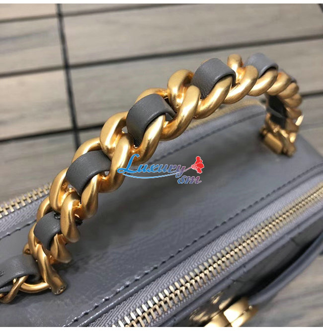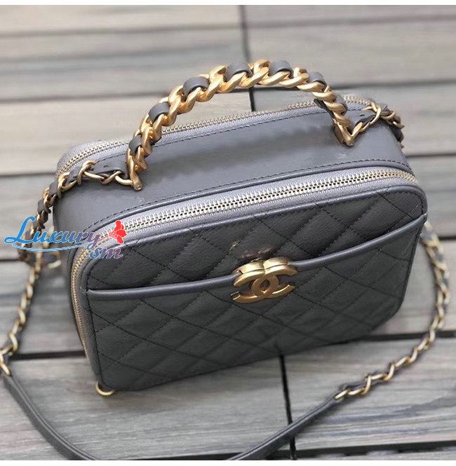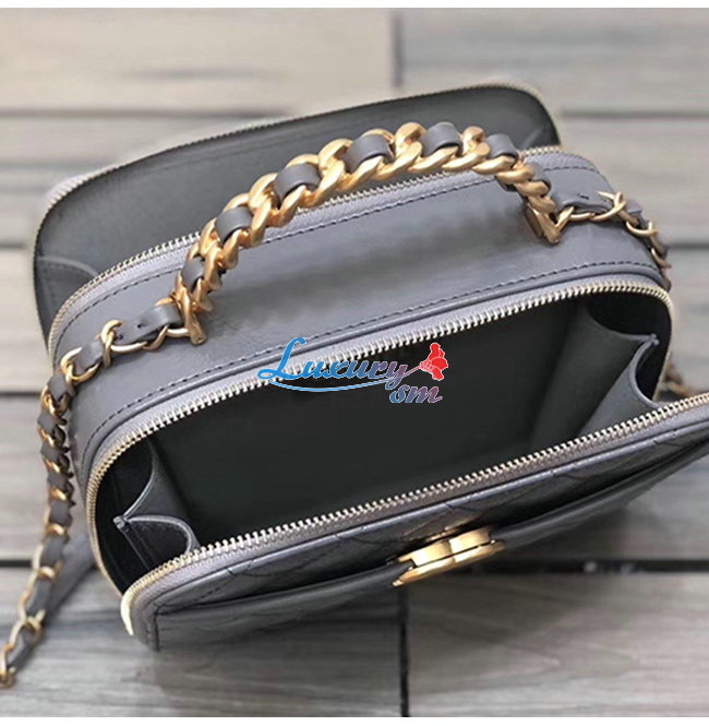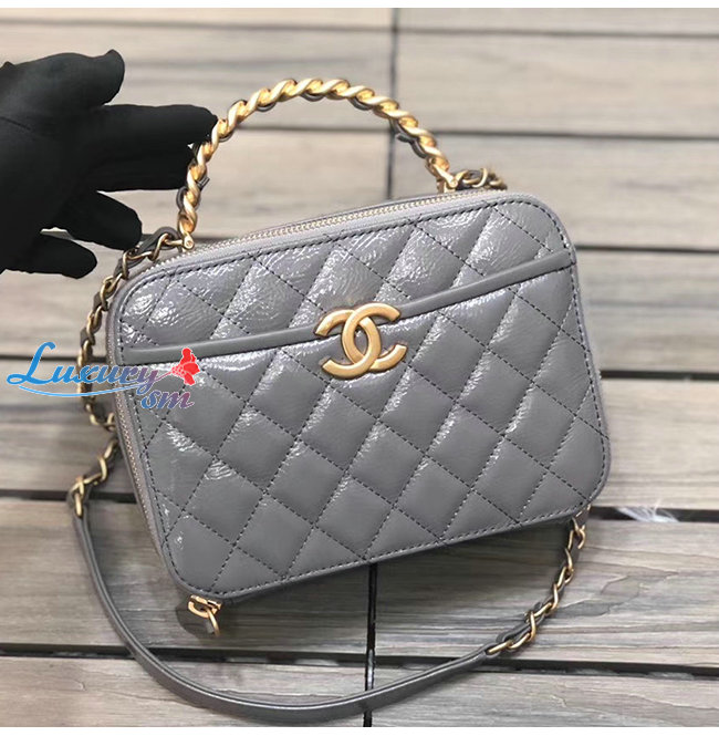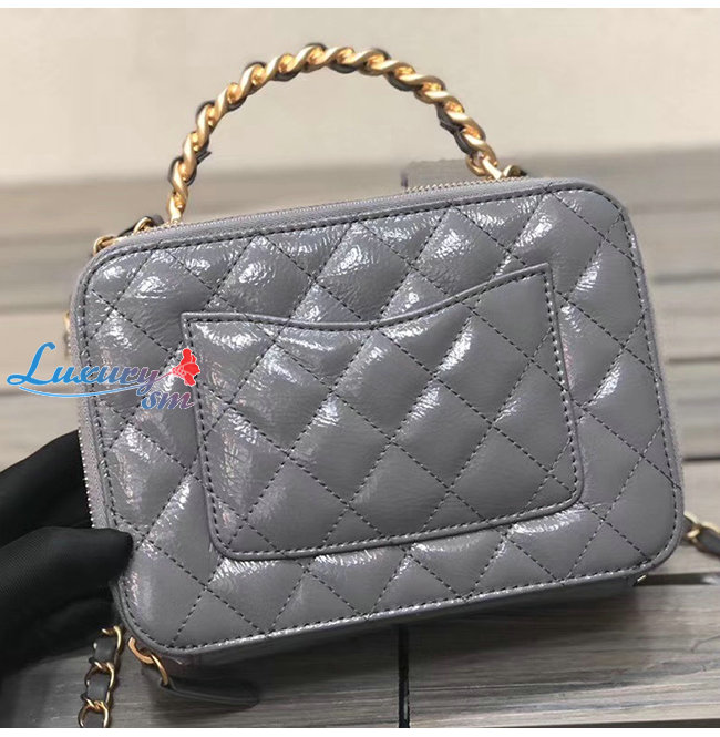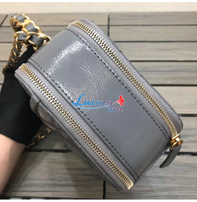 [스페셜오더]CHANEL-AS2179 샤넬 그레이 유광 크럼플드 카프스킨 골드메탈 코스메틱 케이스