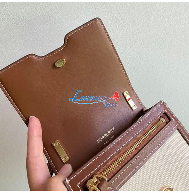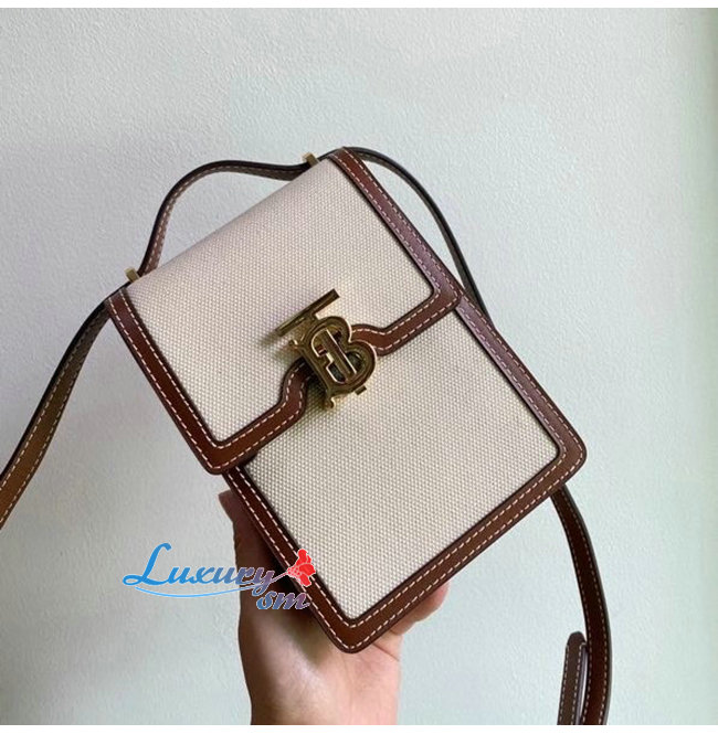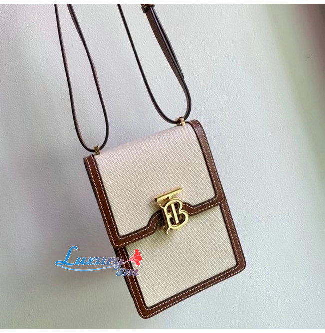 [스페셜오더]BURBERRY-80316491 버버리 화이트/탠 코튼 캔버스 레더 로빈 백