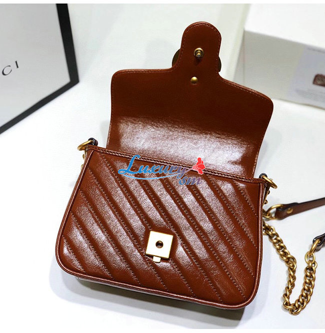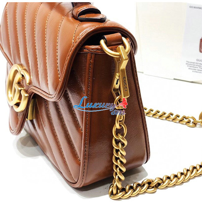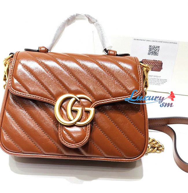 [스페셜오더]GUCCI-583571 2535 구찌 GG 마몽 브라운 마틀라세 가죽 미니 탑 핸들 백