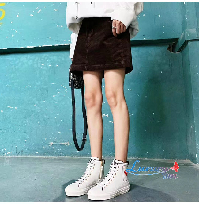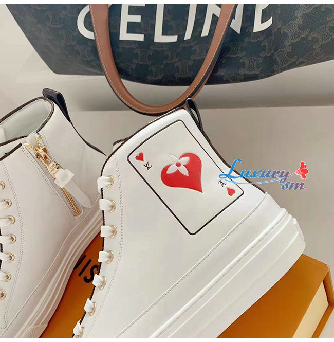 LOUIS VUITTON-1A4X3X 루이비통 화이트 송아지 가죽 레드 디테일 스텔라 스니커 부츠