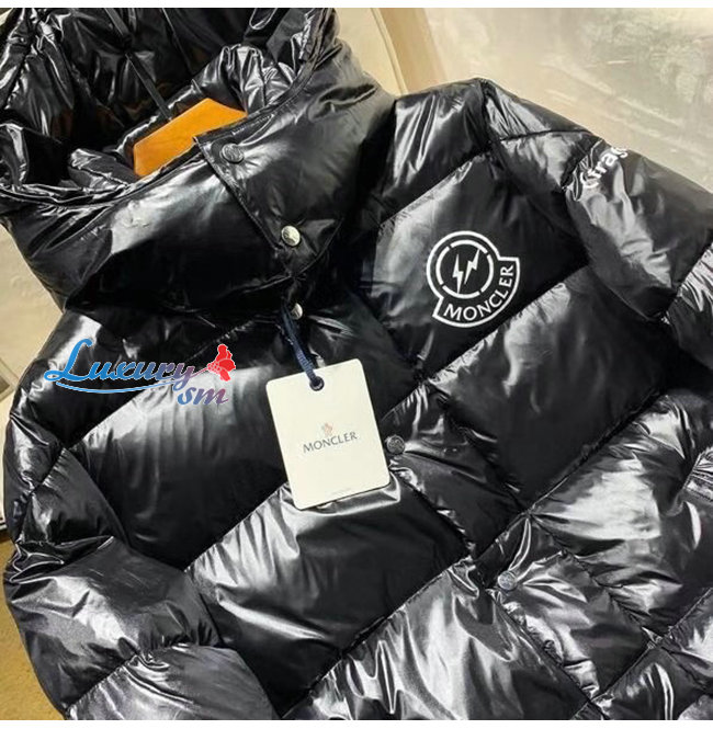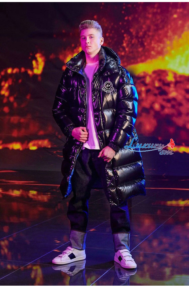 MONCLER-12093 몽클레어 블랙 프린트 장식 롱 패딩 남성용