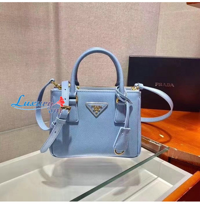 [스페셜오더]PRADA-1BA906 프라다 블루 사피아노 가죽 마이크로 갤러리아 탑 핸들백