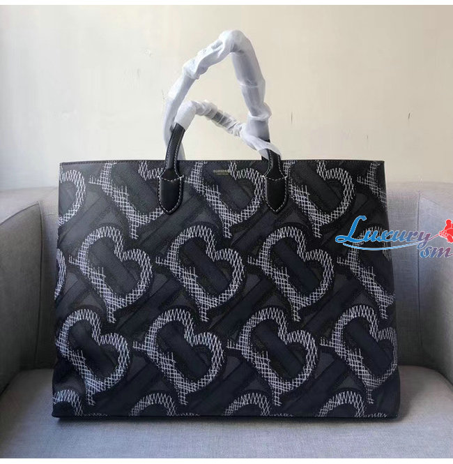 [스페셜오더]BURBERRY-80326601 버버리 그라파이트 모노그램 프린트 E-캔버스 토트 백