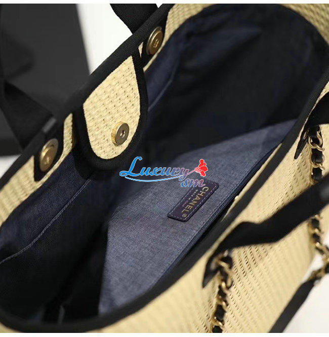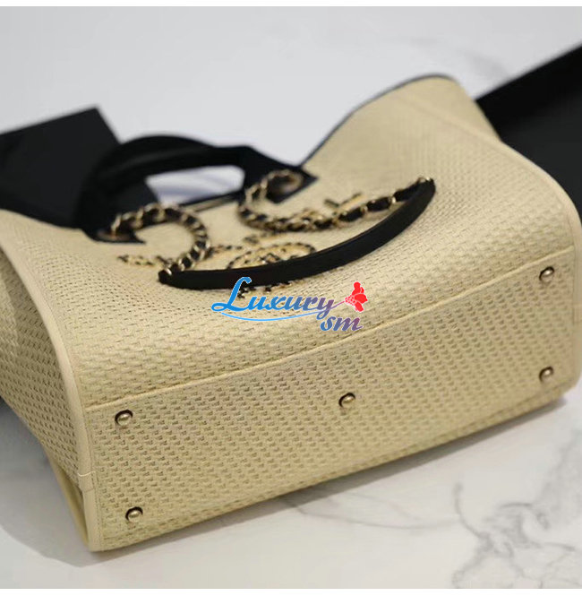 [스페셜오더]CHANEL-A66941 샤넬 베이지 스트로 카프스킨 골드 메탈 라지 쇼핑백