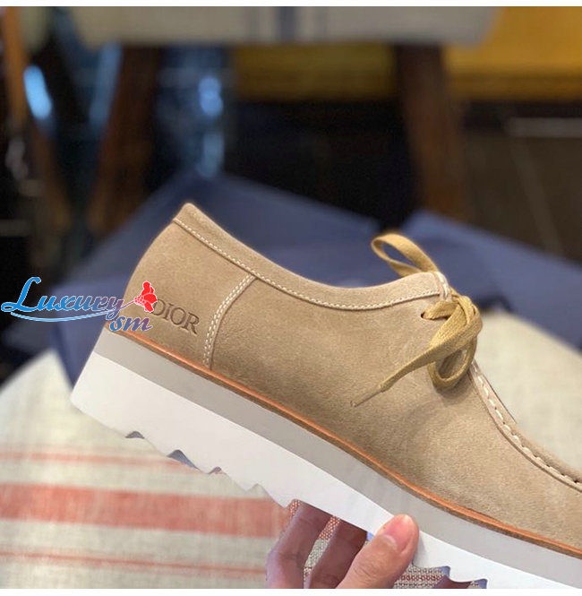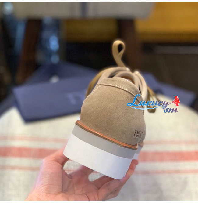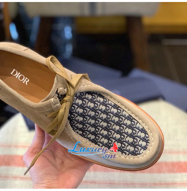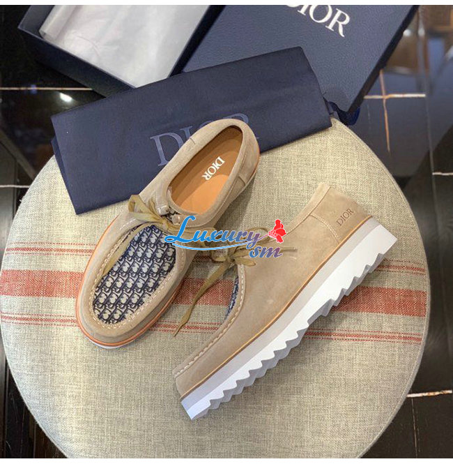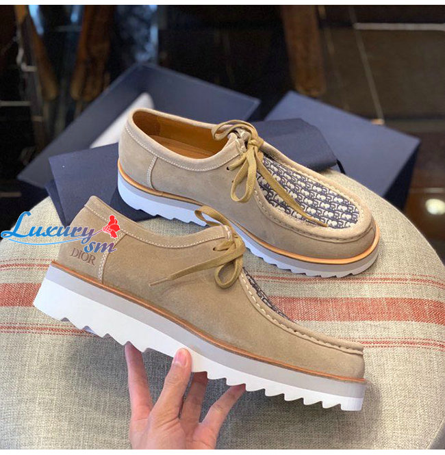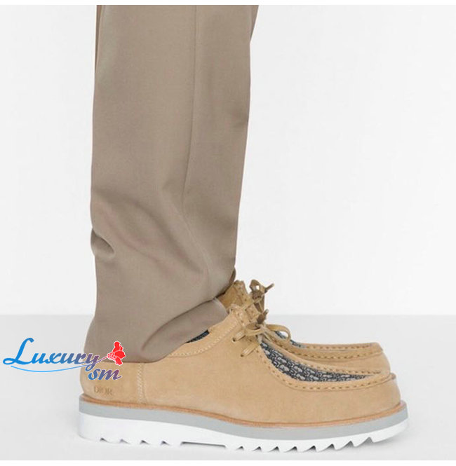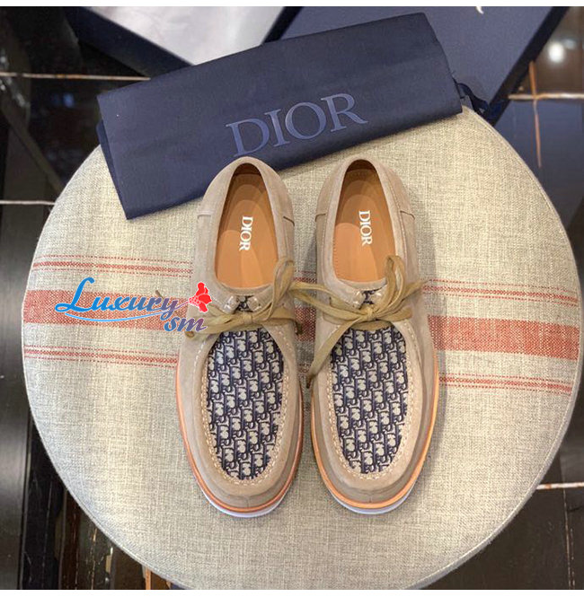 DIOR-3DE311 디올 베이지 스웨이드 Dior Oblique 자카드 레이스업 슈즈 남성용