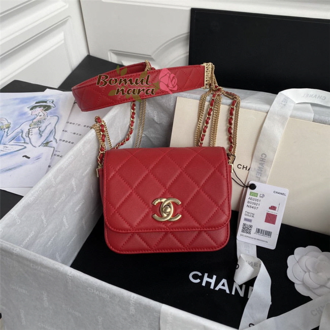 [스페셜오더]CHANEL-AS2051 샤넬 레드 램스킨 퀼팅 스몰 금장 체인 플랩백 #샤넬명품레플리카
