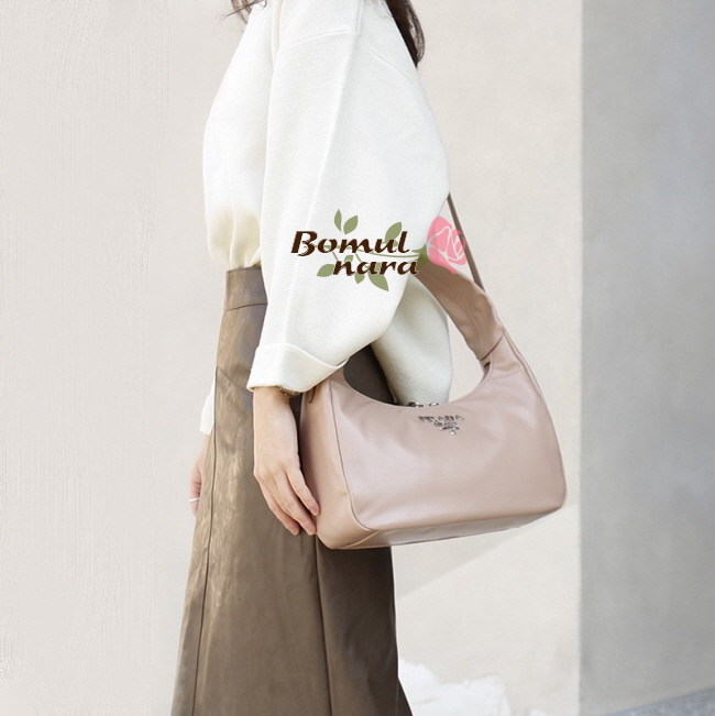 [스페셜오더]PRADA-1BC132 프라다 파우더 베이지 투웨이 로고 스몰 호보 백