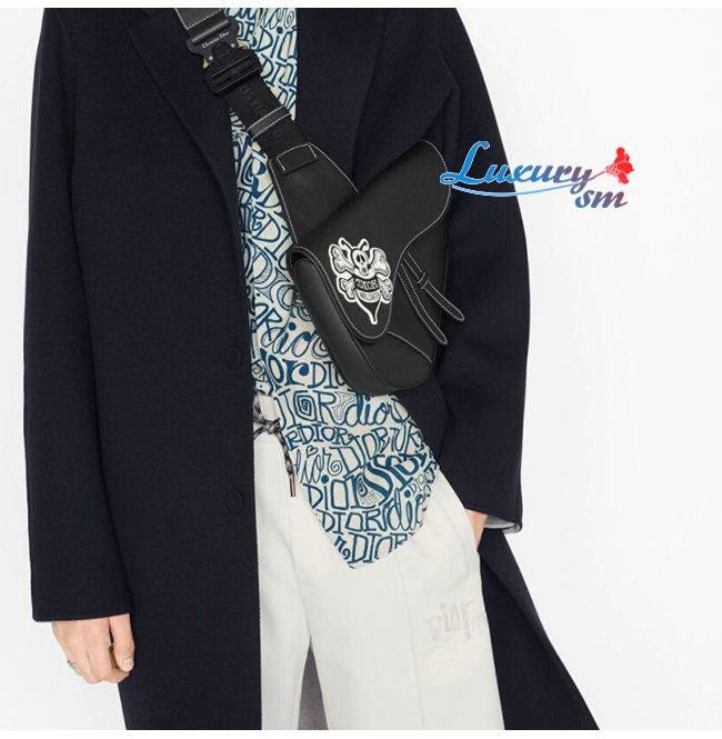 [스페셜오더]DIOR-1ADPO093 디올 블랙 DIOR AND SHAWN 꿀벌 패치 자수 SADDLE 백