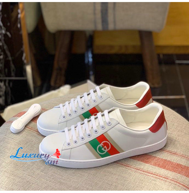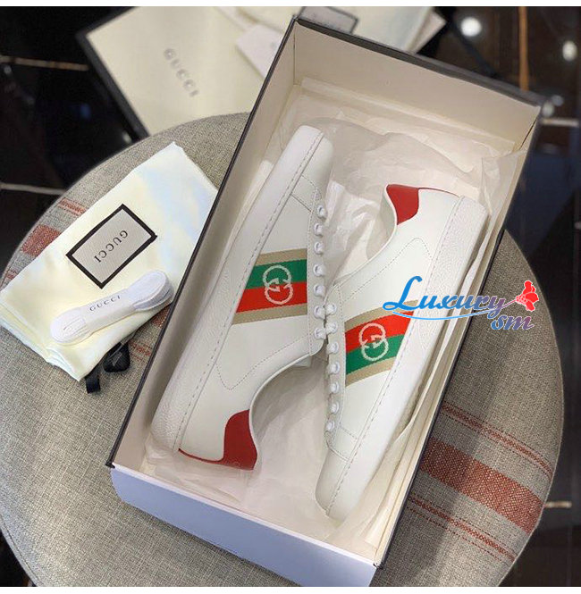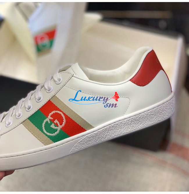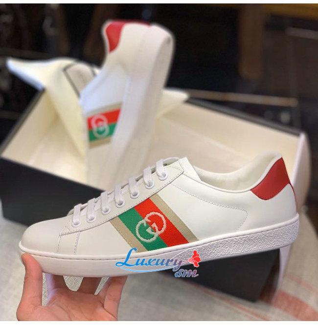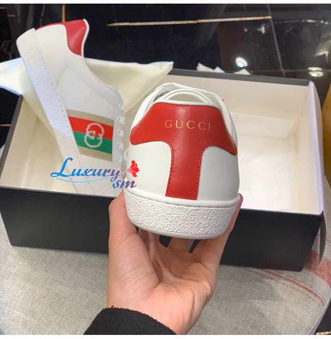 GUCCI-644749 9063 구찌 에이스 화이트/레드 가죽 인터로킹 G 디테일 스니커즈