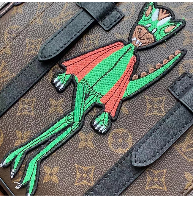 LV 캐릭터 자수 패치를 더한 모노그램 캔버스 소재.