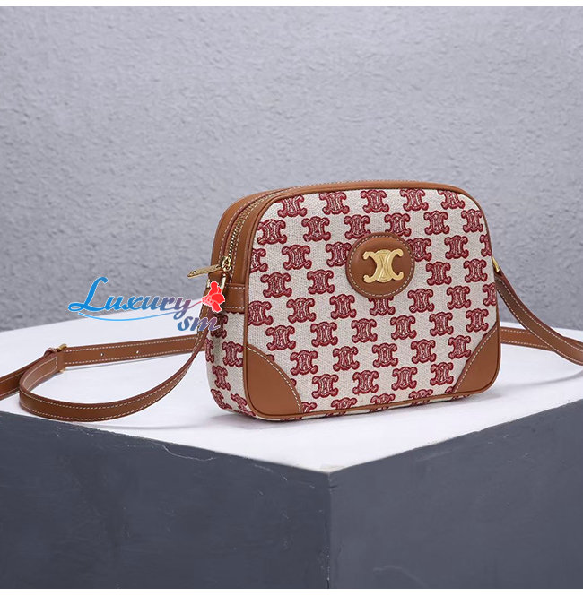 [스페셜오더]CELINE-194332 셀린느 브라운/핑크 트리오페 자수 카메라 백