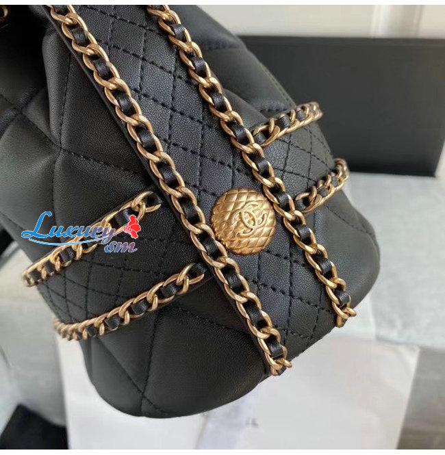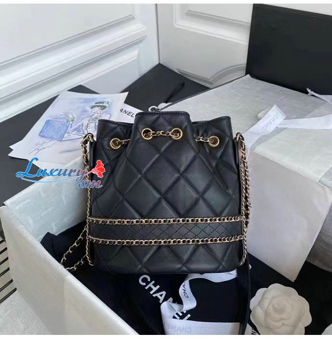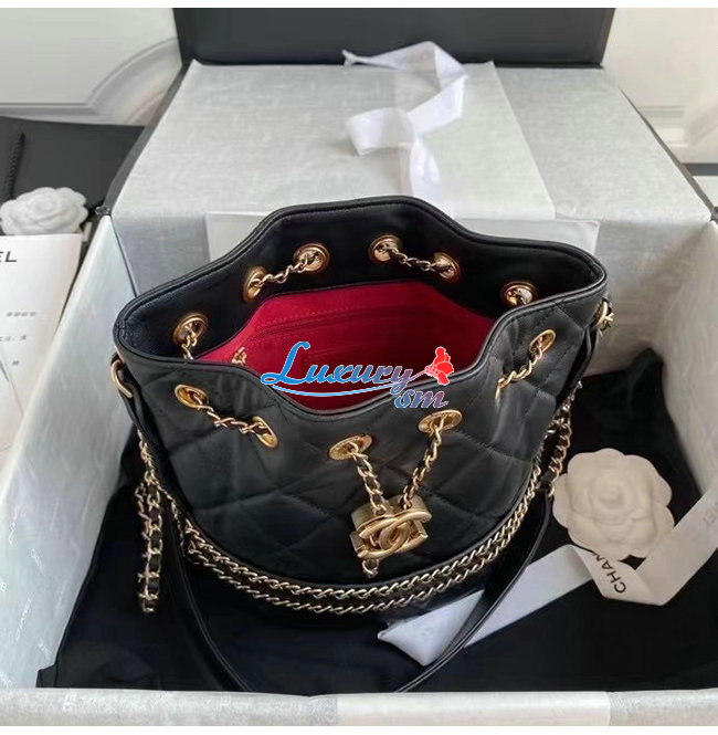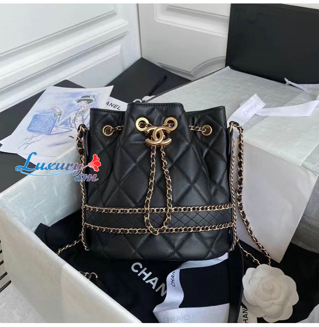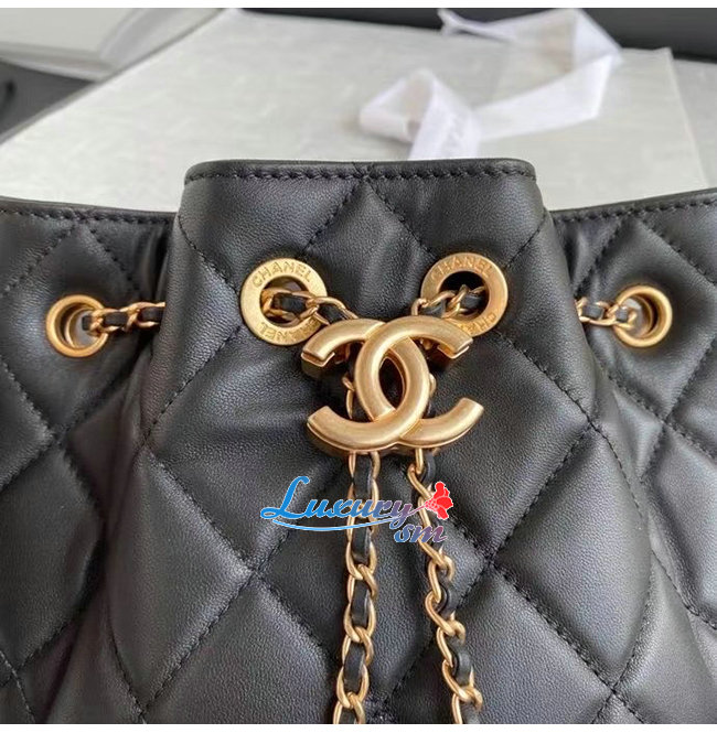 [스페셜오더]CHANEL-AS2252 샤넬 블랙 램스킨 골드 메탈 라지 드로스트링 백