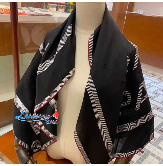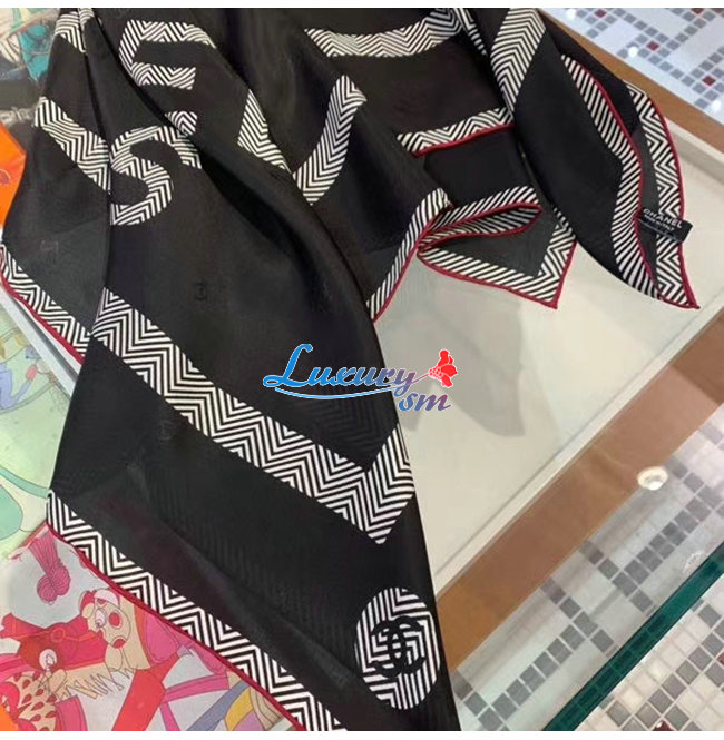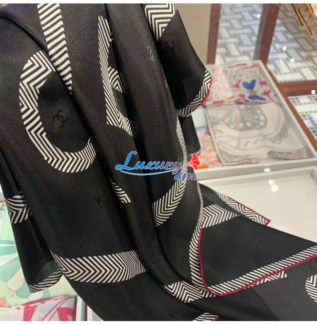 CHANEL-AA7248 샤넬 블랙 실크 트윌 스퀘어 스카프