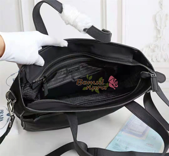 [스페셜오더]PRADA-2VG032 프라다 블랙 나일론 사피아노 가죽 토트 백