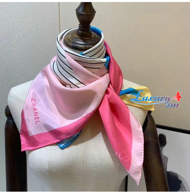 CHANEL-AA7364 샤넬 핑크/그레이/베이지 실크 트윌 스퀘어 스카프 가격 : 180,000원