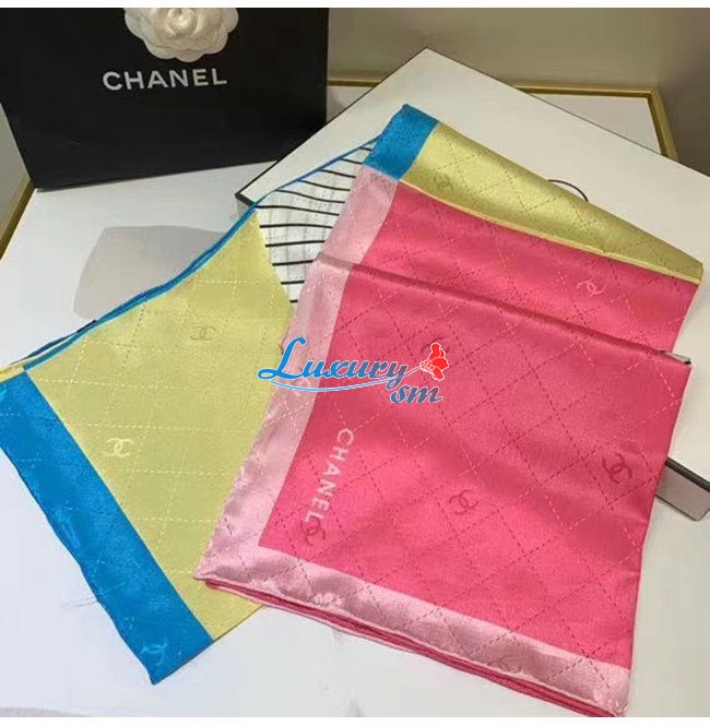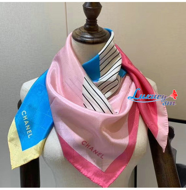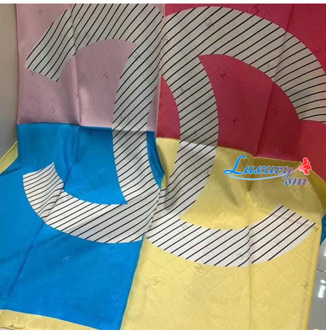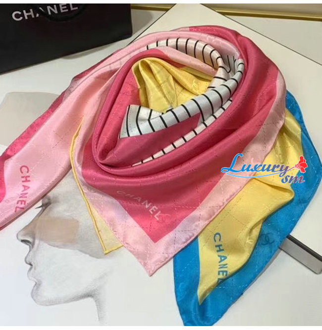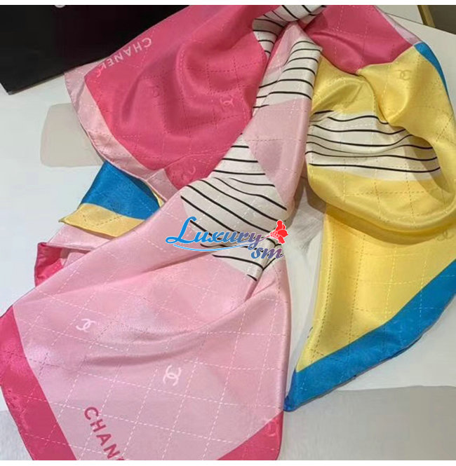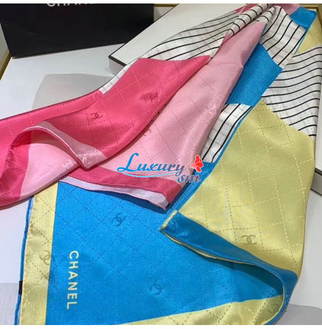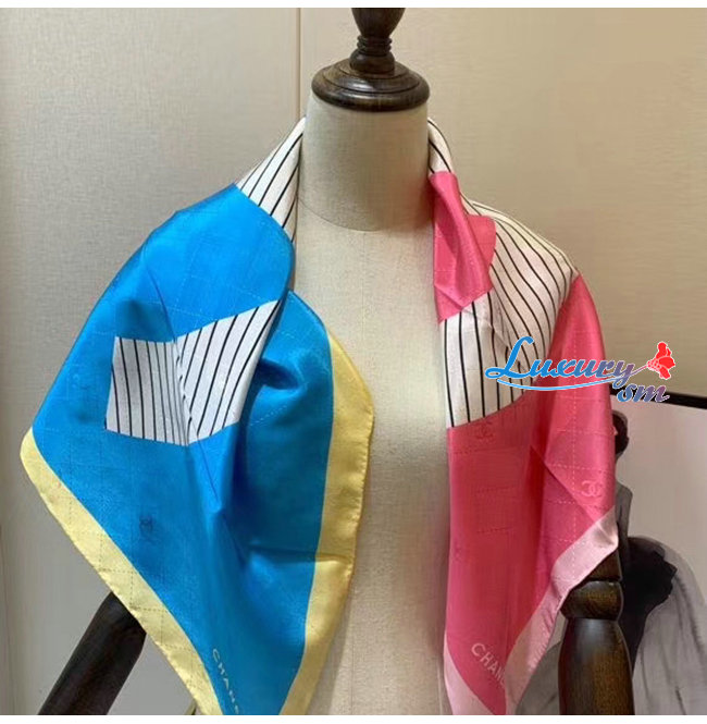 CHANEL-AA7364 샤넬 옐로우/블루/핑크 실크 트윌 스퀘어 스카프