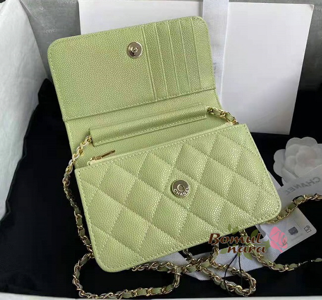 [스페셜오더]CHANEL-AP1649 샤넬 그린 캐비어 골드 메탈 WOC 미니 체인 지갑