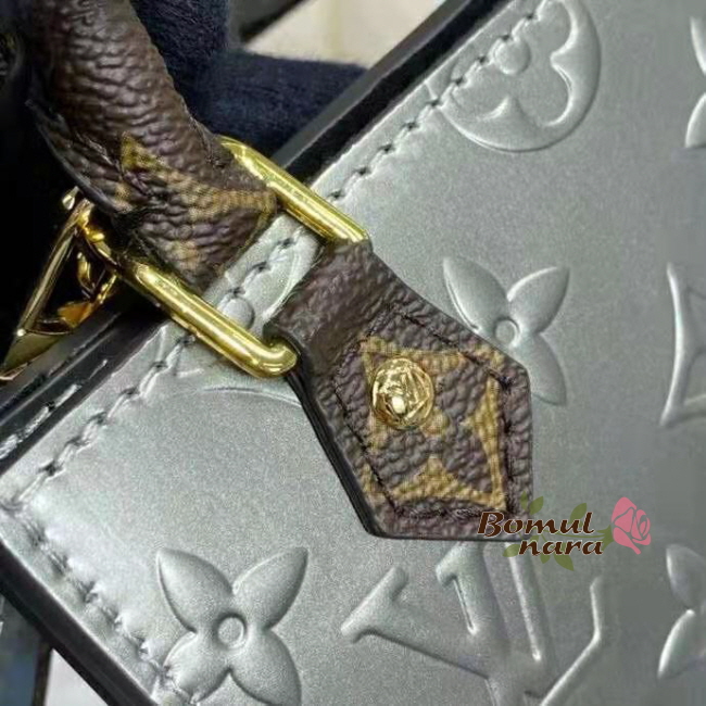 메탈릭 페이턴트 가죽소재와 모노그램 캔버스 소재의 핸들