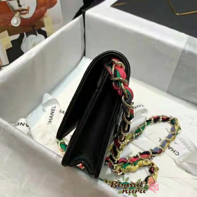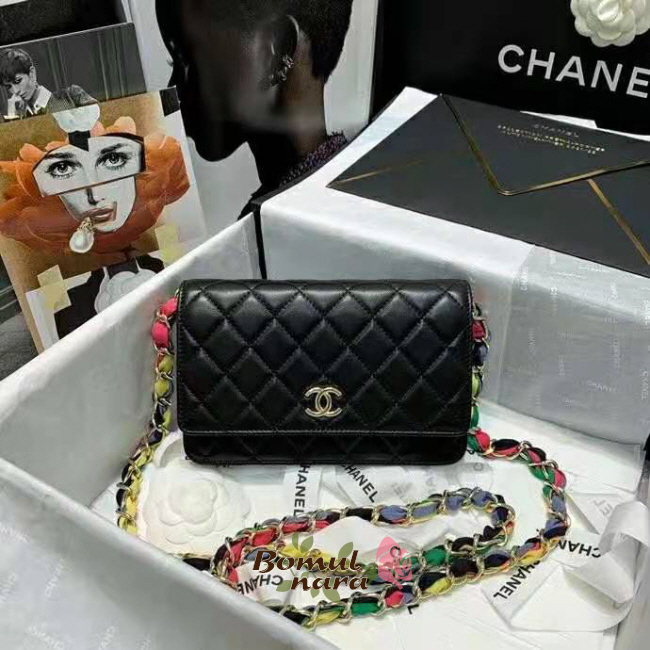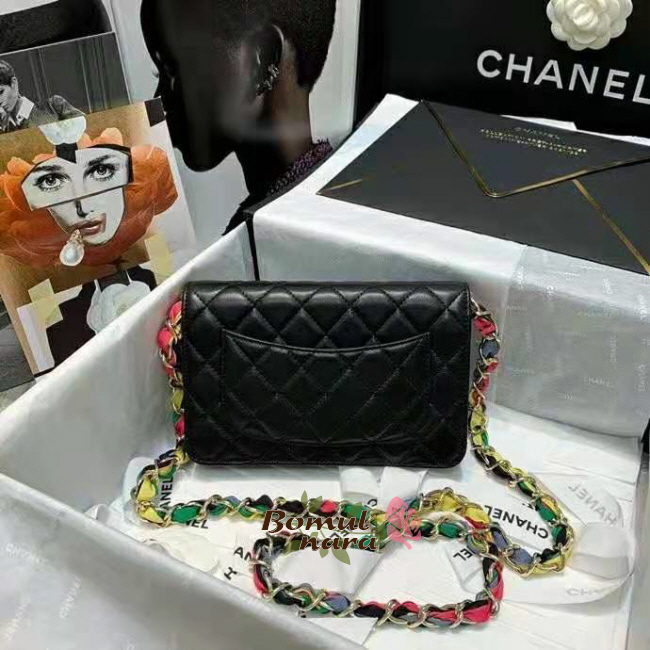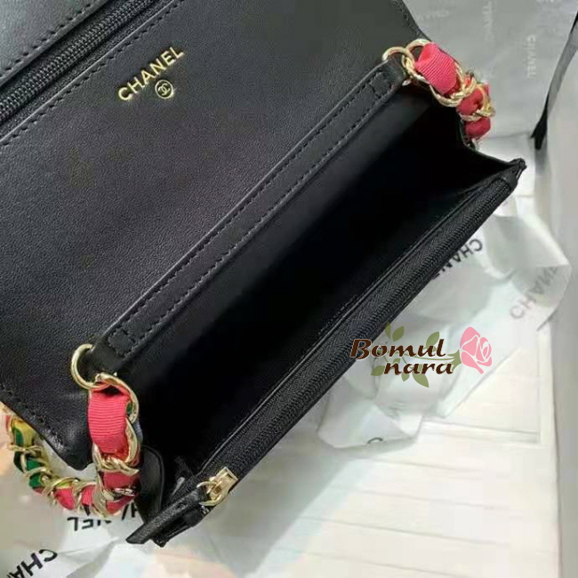 [스페셜오더]CHANEL-AP2022 샤넬 블랙 램스킨 CC로고 리본 체인 지갑