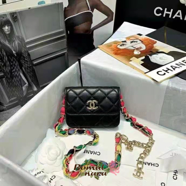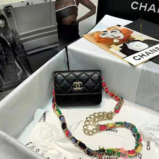 [스페셜오더]CHANEL-AP2054 샤넬 블랙 램스킨 CC로고 리본 체인 미니 벨트 백
