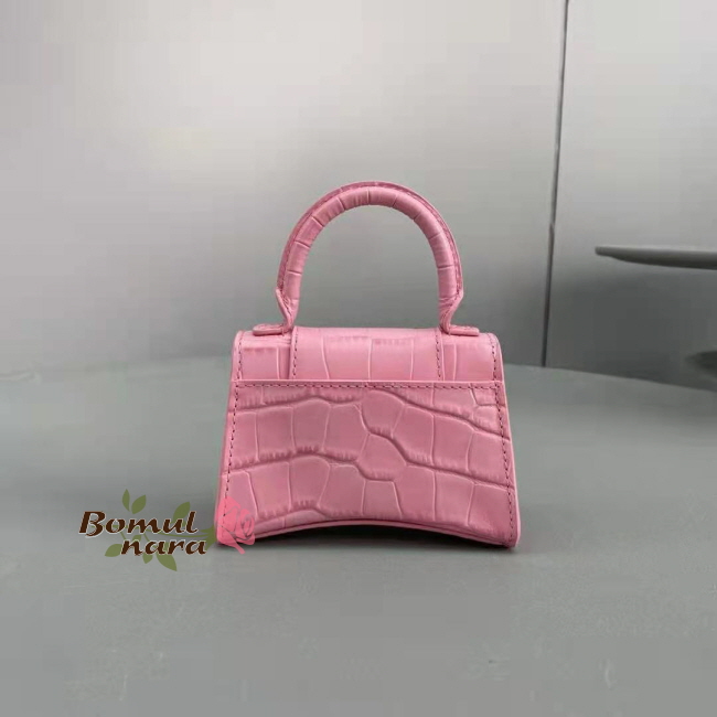[스페셜오더]BALENCIAGA-6373721 발렌시아가 핑크 아워글래스 크로커다일 엠보싱 미니 탑 핸들 백