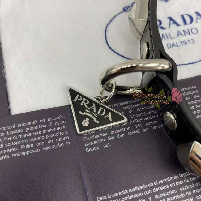 PRADA-2YC013 프라다 블랙 브러쉬드 가죽 반려 동물 목줄 Small