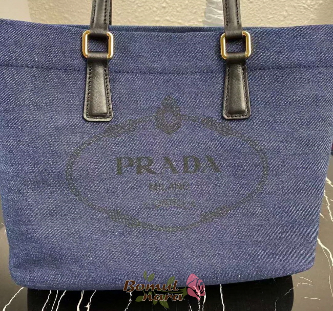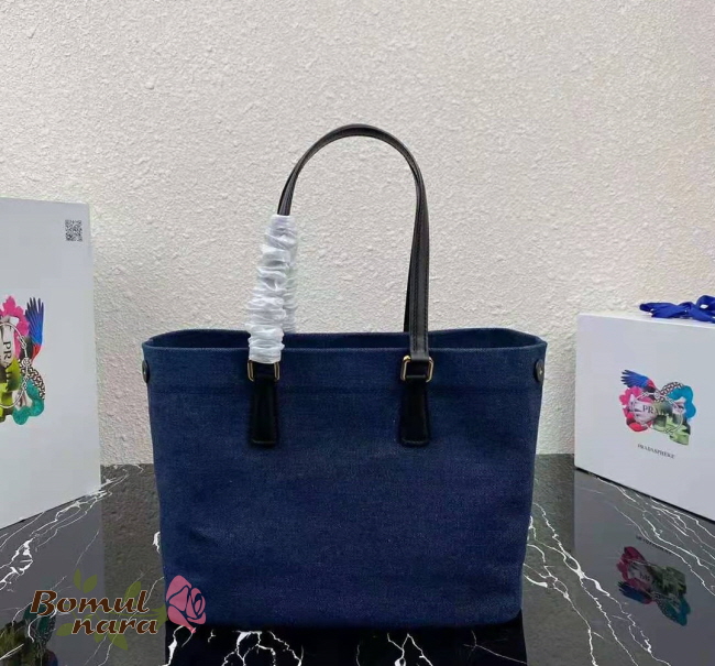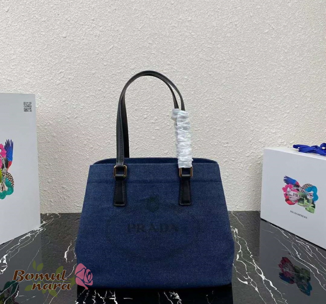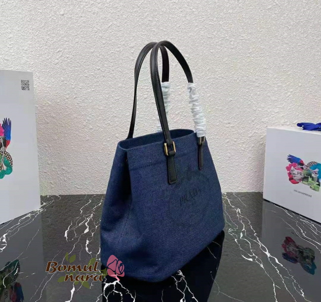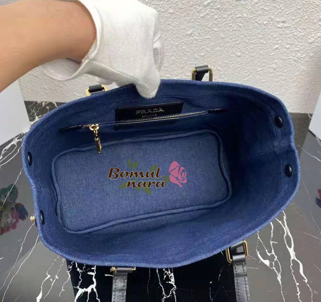 [스페셜오더]PRADA-1BG356 프라다 블루 데님 프린트 로고 토트백