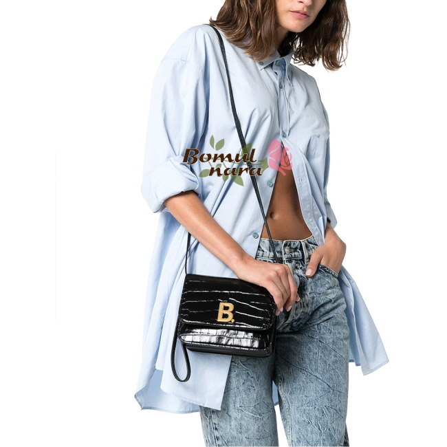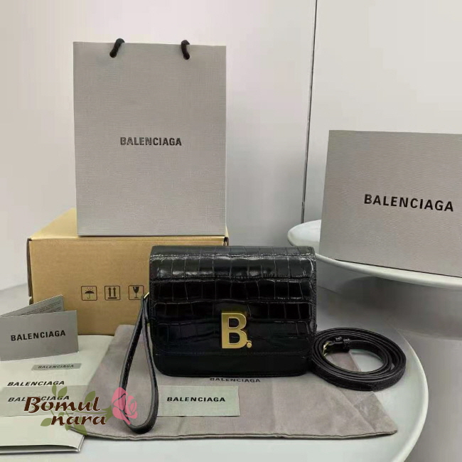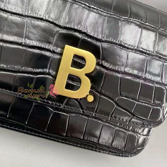 [스페셜오더]BALENCIAGA-6181561 발렌시아가 블랙 크로커다일 엠보싱 B. 스몰 숄더백
