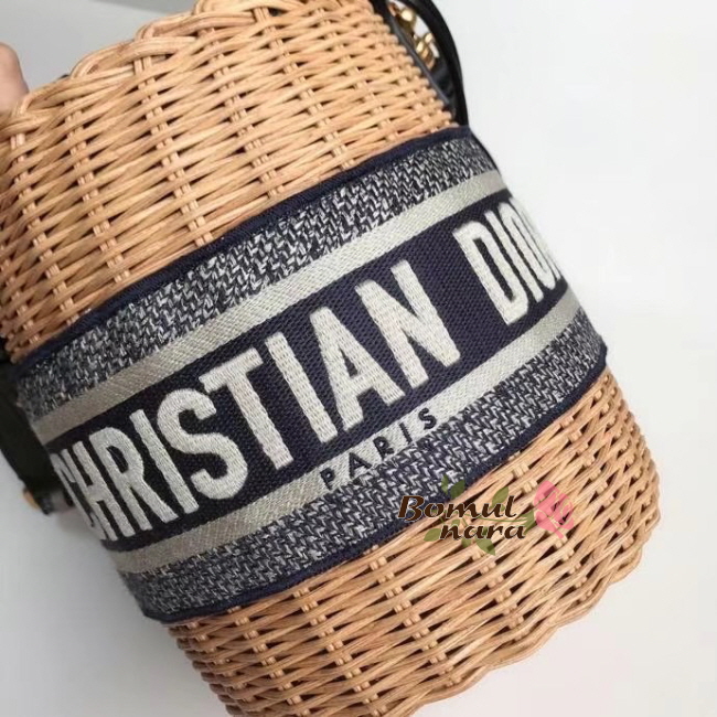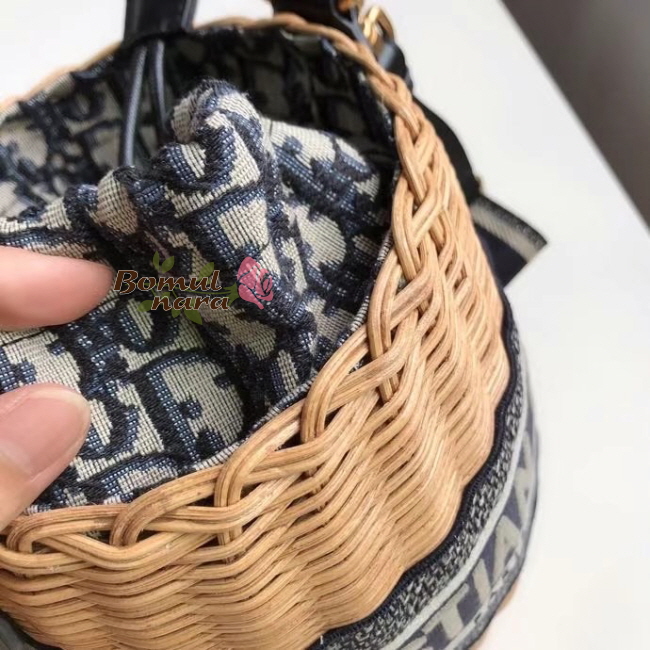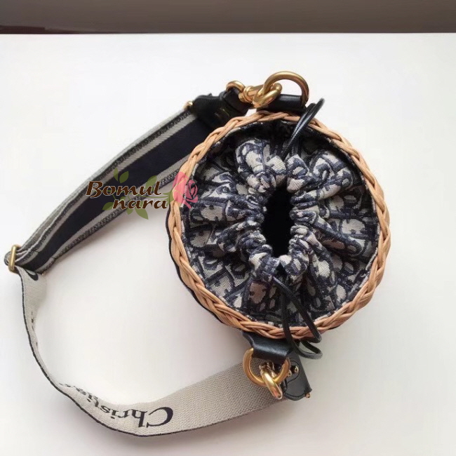 ▶블루 Dior Oblique 자카드 내부 가죽 드로우스트링
