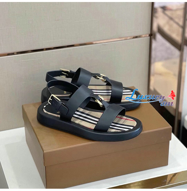 BURBERRY-80374531 버버리 체인 링크 디테일 레더 샌들 남여공용