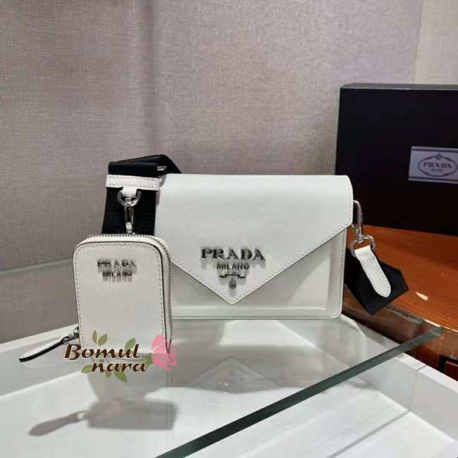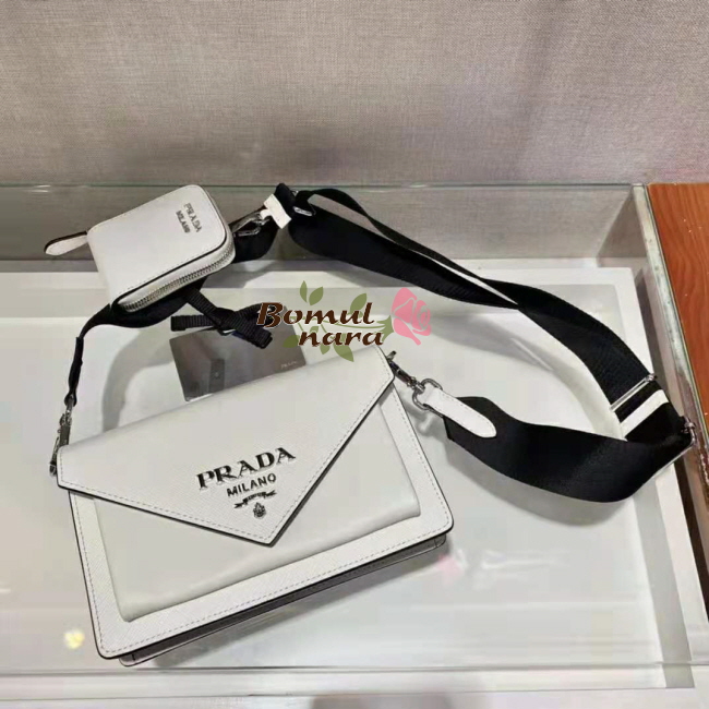 [스페셜오더]PRADA-1BP020 프라다 화이트 사피아노 가죽 미니 엔벨로프 백