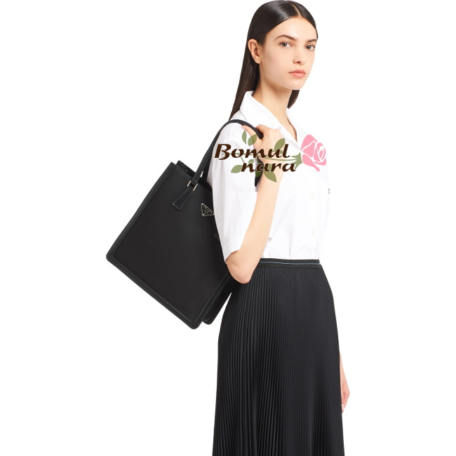 [퍼팩트버전]PRADA-1BG363 프라다 블랙 가죽 및 나일론 토트 백