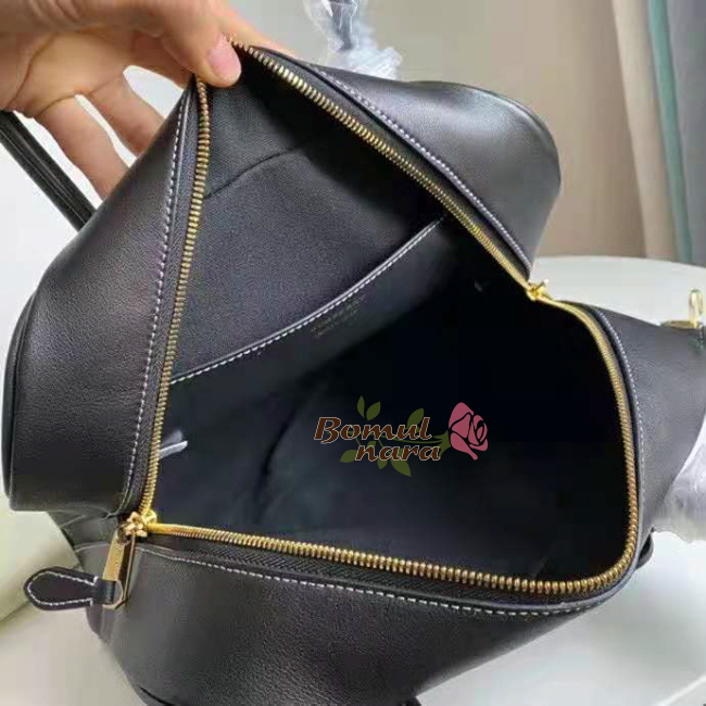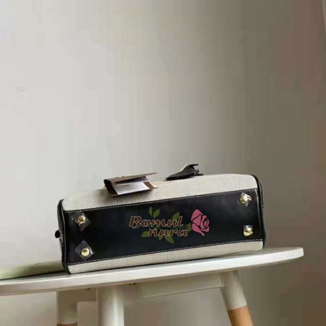 디자인으로, 둥글게 말린 상단 가죽 손잡이가 특징입니다.