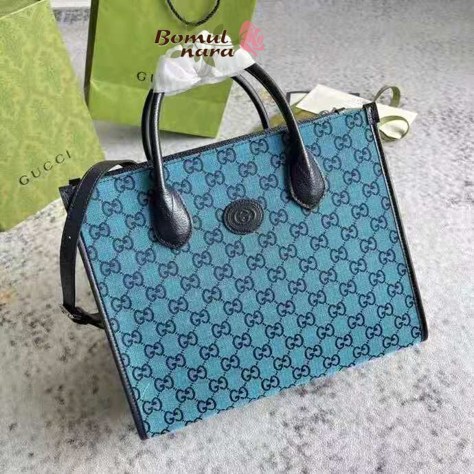 라이트 블루&블루 GG 캔버스 / 블루 가죽 트리밍