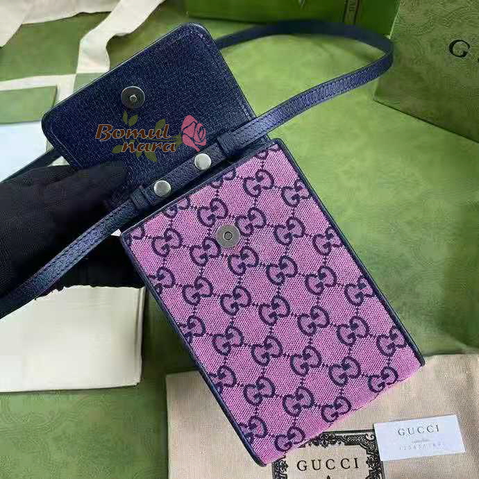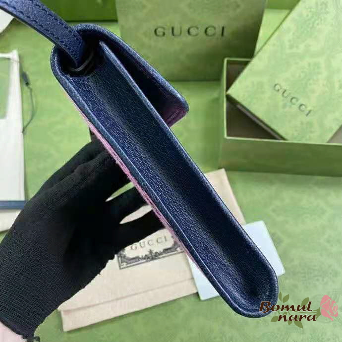 핑크&블루 GG 캔버스 / 블루 가죽 트리밍