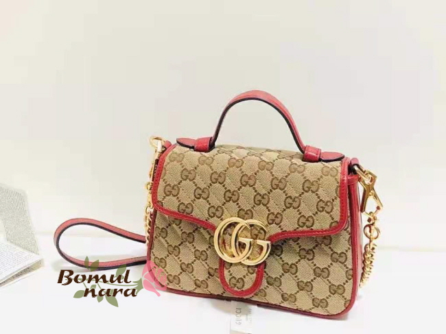 [스페셜오더]GUCCI-583571 2535 구찌 GG 마몽 브라운 마틀라세 가죽 미니 탑 핸들 백