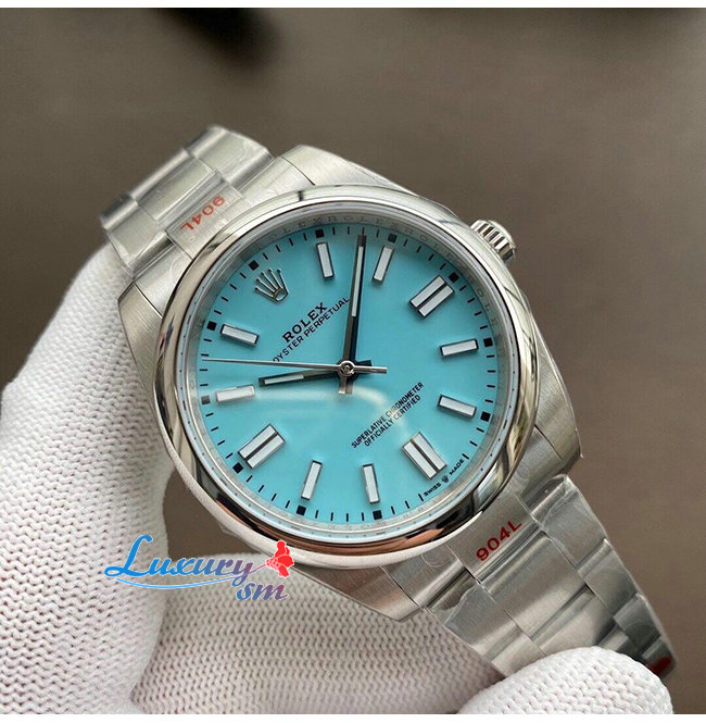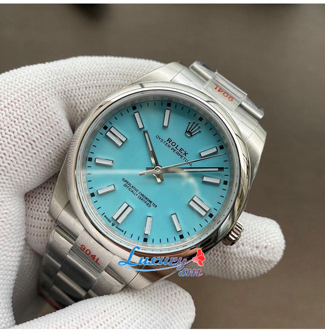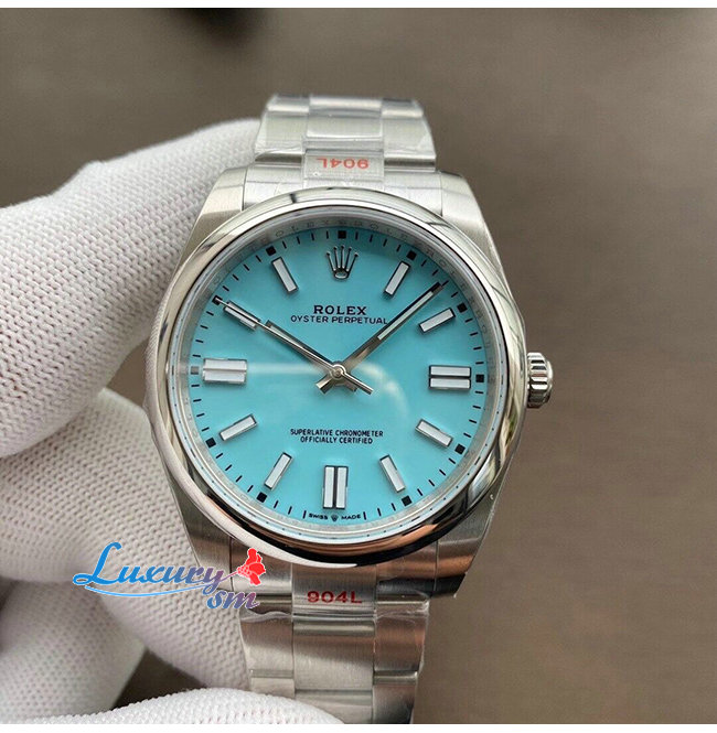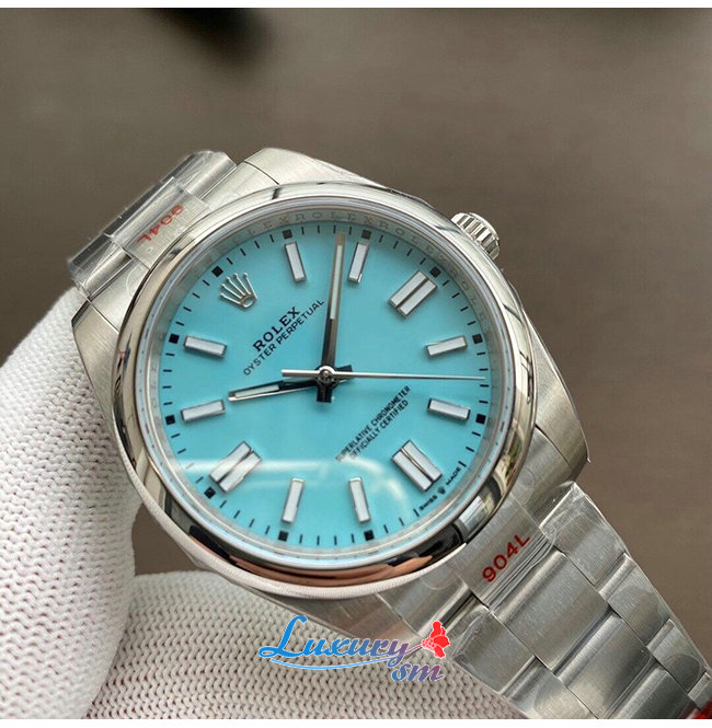 [스페셜오더]ROLEX-롤렉스 오이스터 퍼페츄얼 스틸 터콰이즈 블루 다이얼 클래식 신사시계 41mm