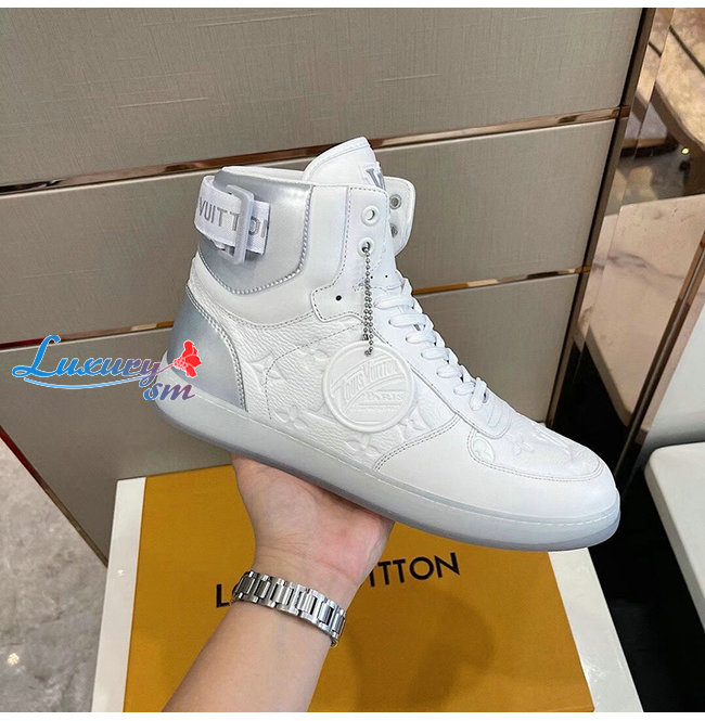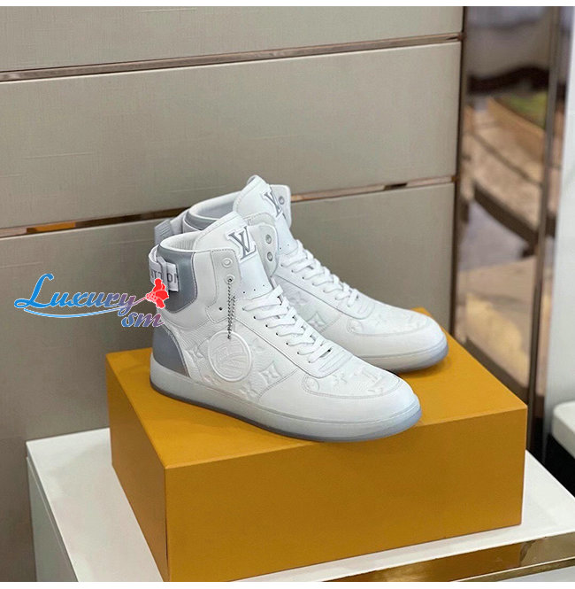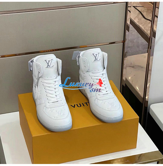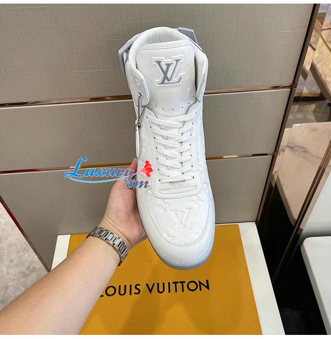 [스페셜오더]LOUIS VUITTON-1A7S6A 루이비통 화이트 모노그램 엠보스드 그레인 송아지 가죽 리볼리 스니커 부츠 남여공용