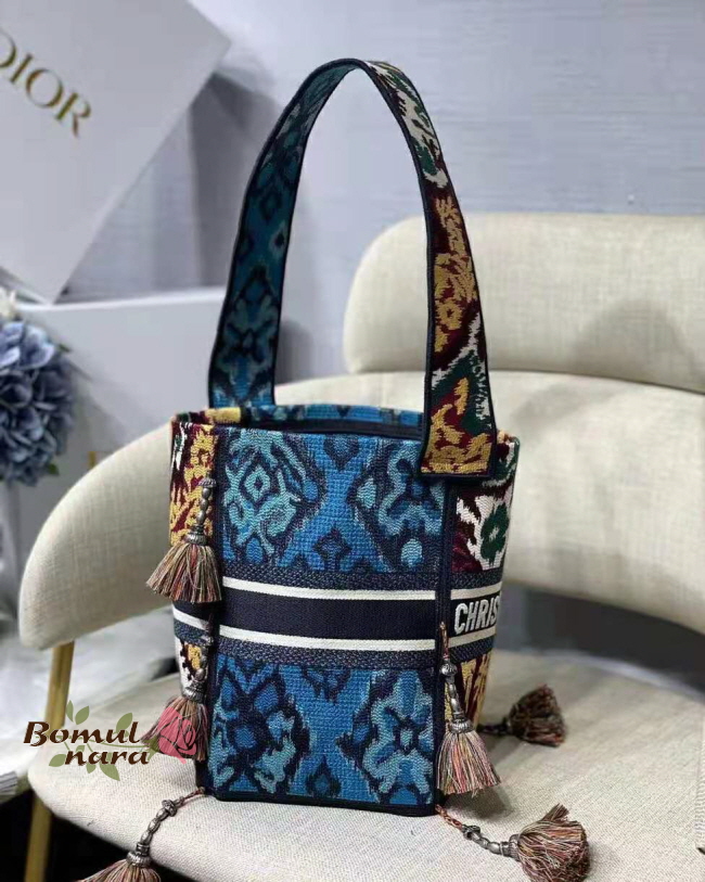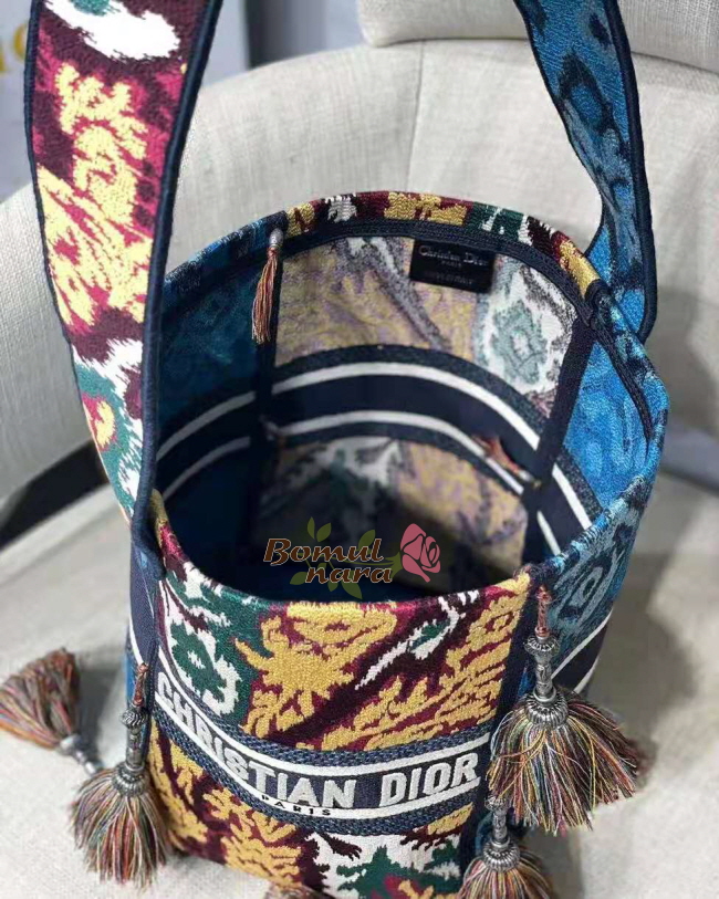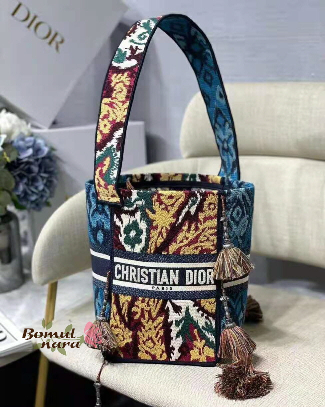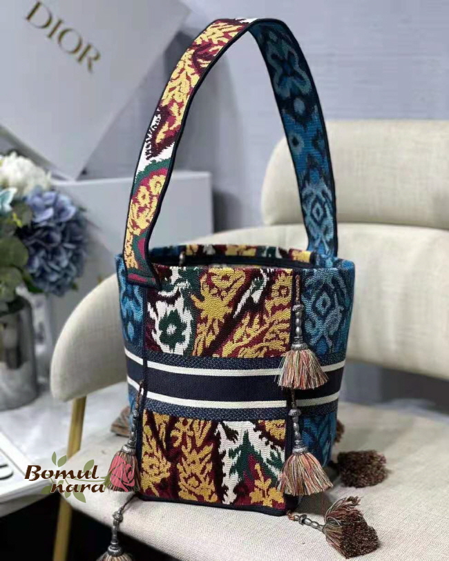 [스페셜오더]DIOR-M1276 디올 블루 멀티컬러 페이즐리 자수 D-BUBBLE 버킷 백