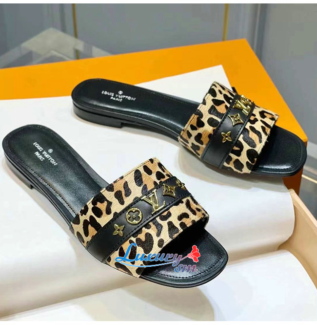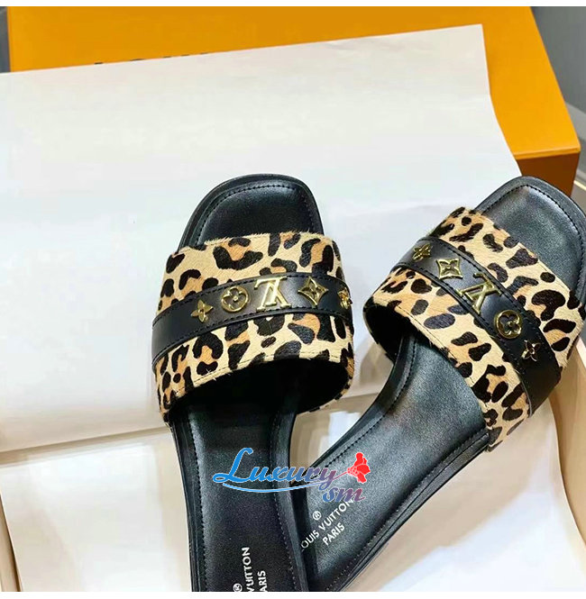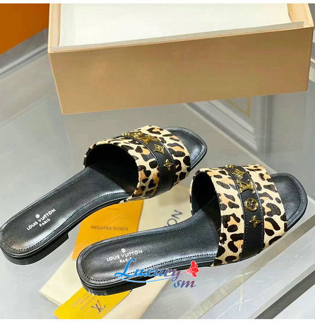 LOUIS VUITTON-1A8W6D 루이비통 카멜 브라운 포니 송아지 가죽 리바이벌 플랫 뮬