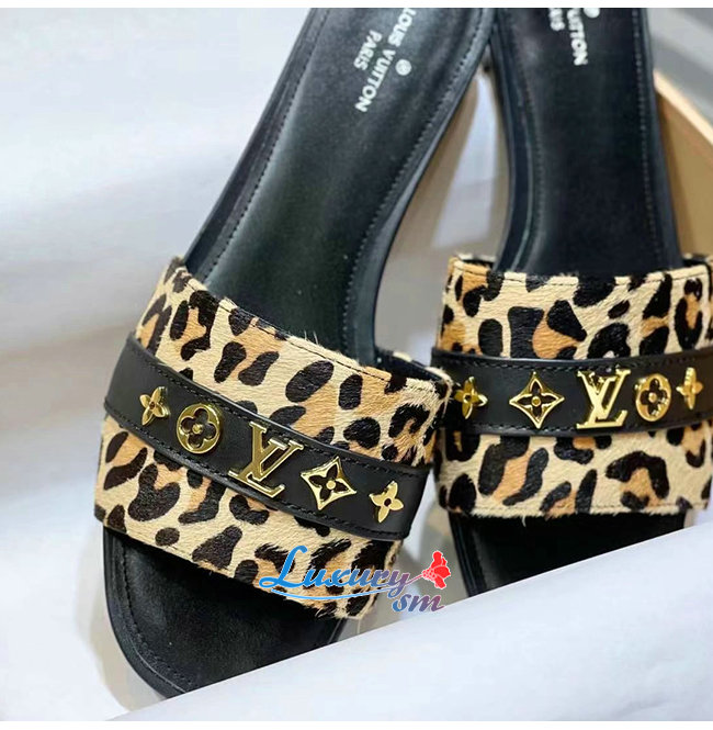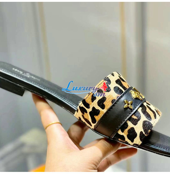 리바이벌 플랫 뮬은 패셔너블 한 레오파드 프린트가있는
