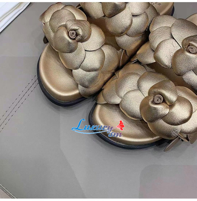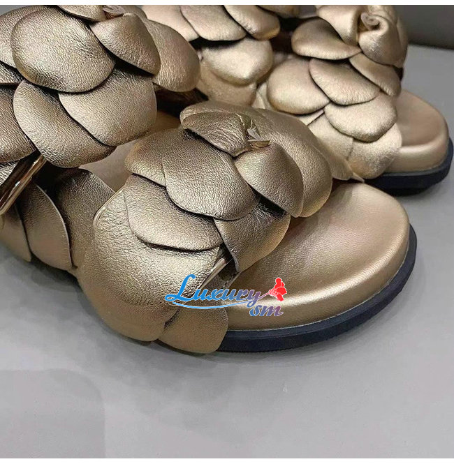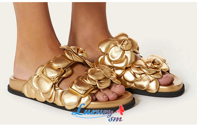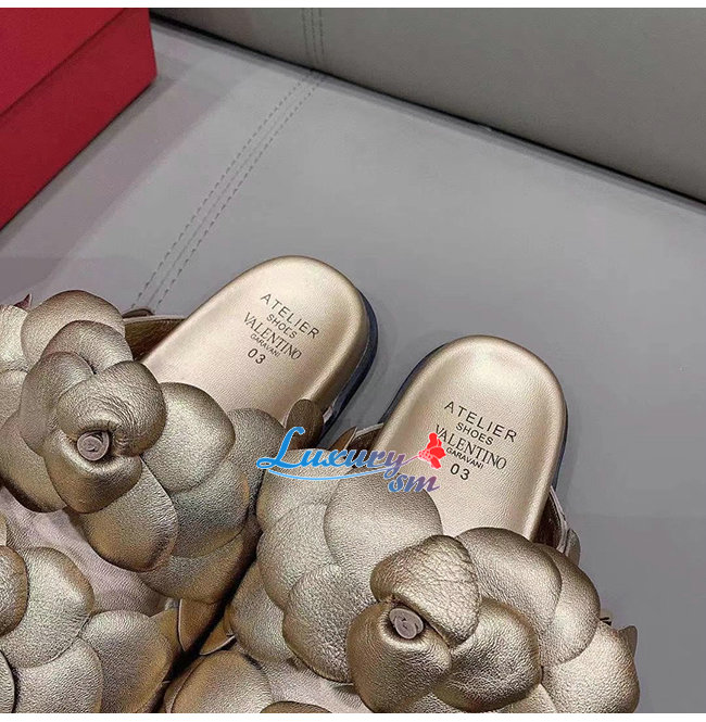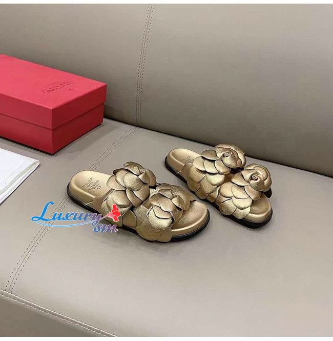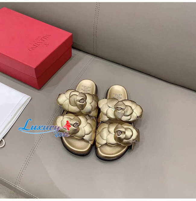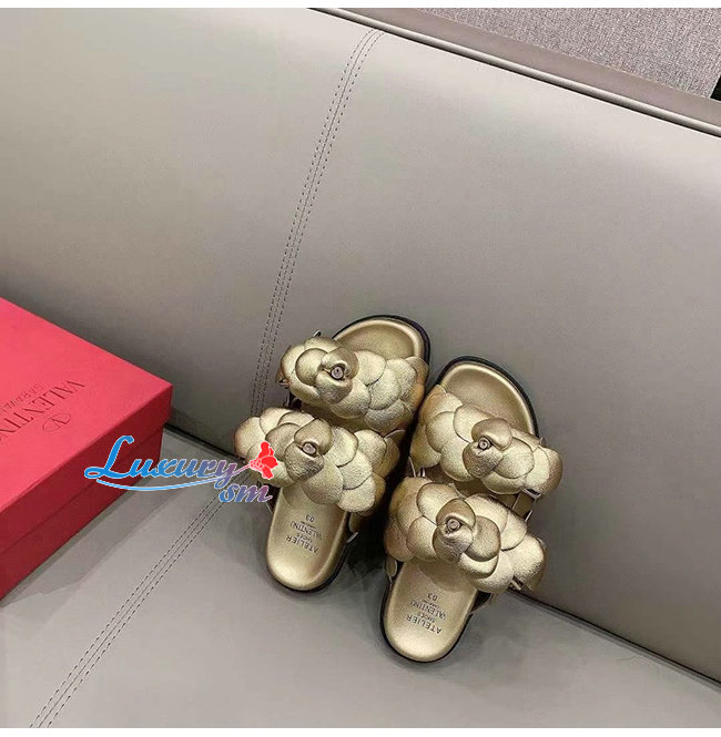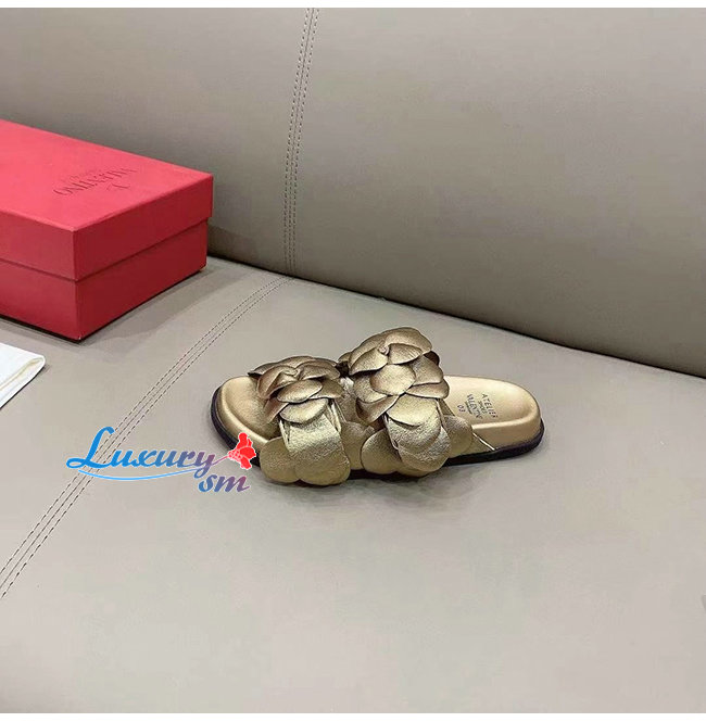 VALENTINO-VW2S0A 발렌티노 골드 라미네이티드 나파 가죽 슬라이드 샌들