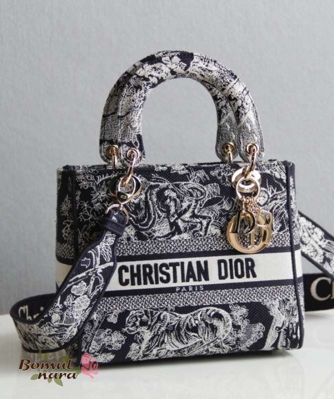 [스페셜오더]CHRISTIAN DIOR-M0565 디올 블루 Toile de Jouy Reverse 자수 LADY D-LITE 미디엄 백
